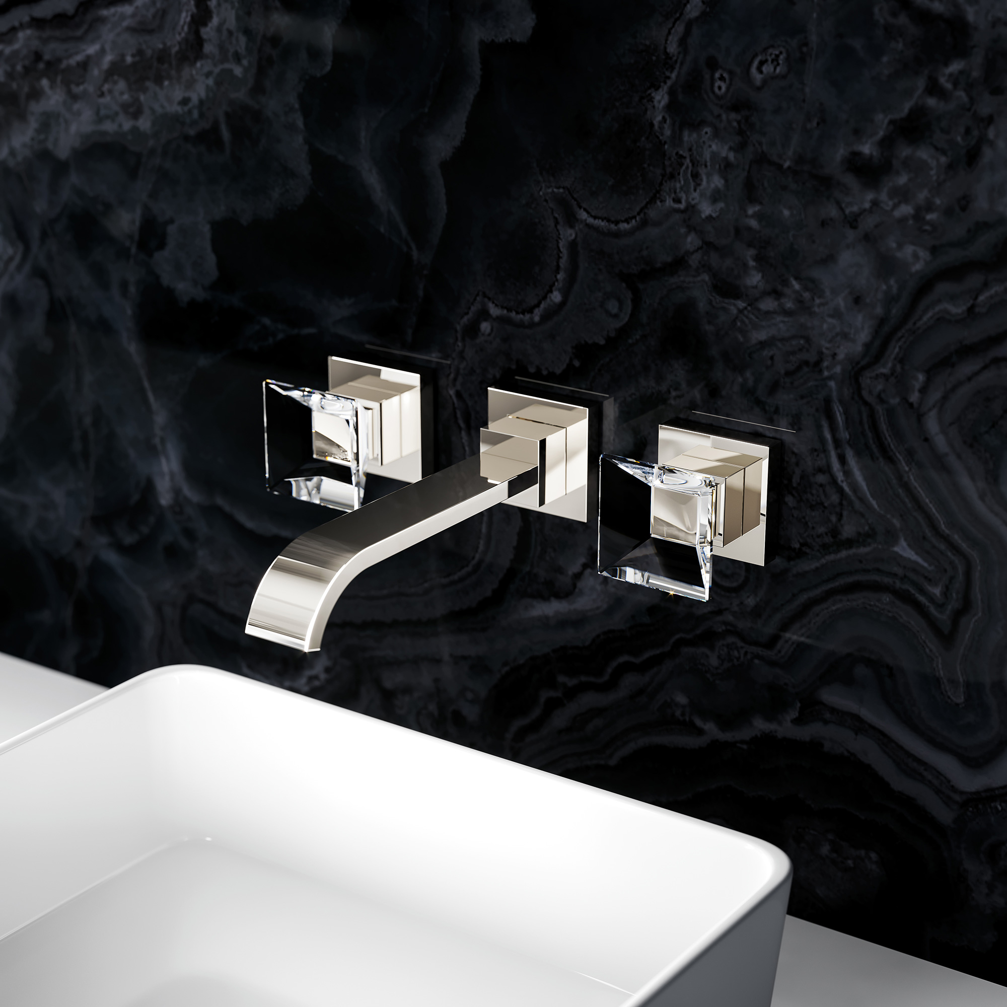 Ihre besonders dekorative Wirkung entfalten die Kristallgriffe im spannungsreichen Zusammenspiel mit dem puristisch-minimalistischen Armaturendesign, das „Empire Royal Crystal“ mit der Basisserie „Empire Royal“ teilt. Sie bewahren den cleanen Look der Armatur und fügen gleichzeitig ein Element üppigen Schmucks hinzu, das nahezu jedes Badezimmer in die Höhe von wahrem und sinnlichen Luxus hebt.