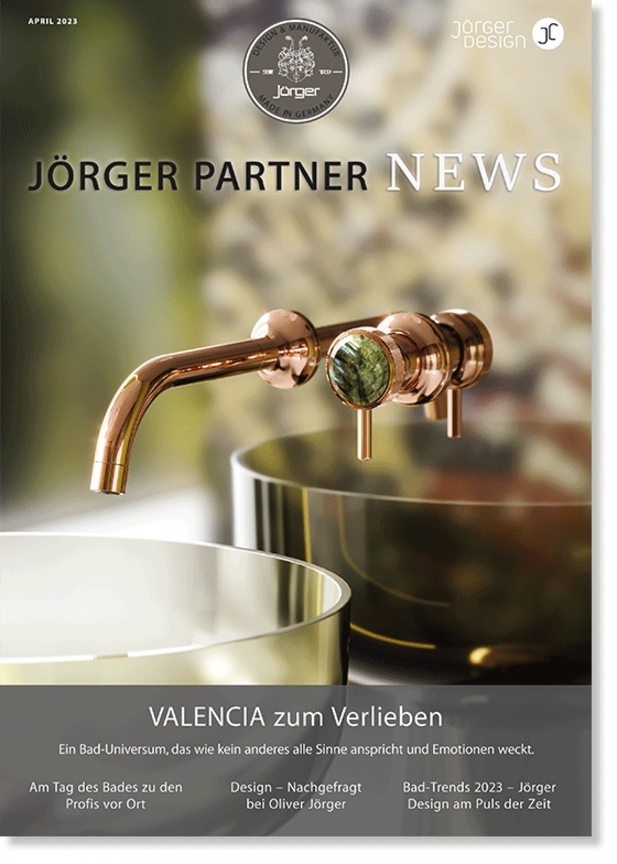 Die JÖRGER Partner News sind ein nützliches Informationsangebot für unsere Kolleginnen und Kollegen im Sanitärfachhandel. Neben der gedruckten Ausgabe bieten wir die Partner News auch zum Downloaden an. Hier präsentieren wir Ihnen die April-Ausgabe 2023.