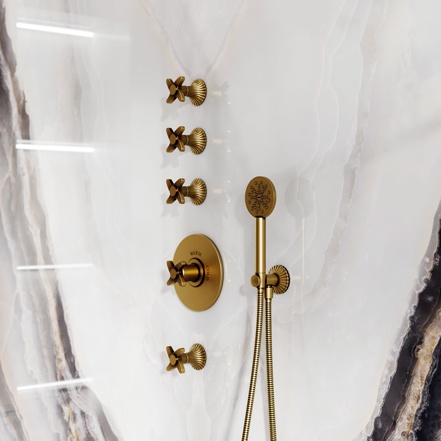 Unterputz-Thermostat ¾ mit Ventil Modulen und Schlauchbrausegarnitur | Serie Cronos in Bronze