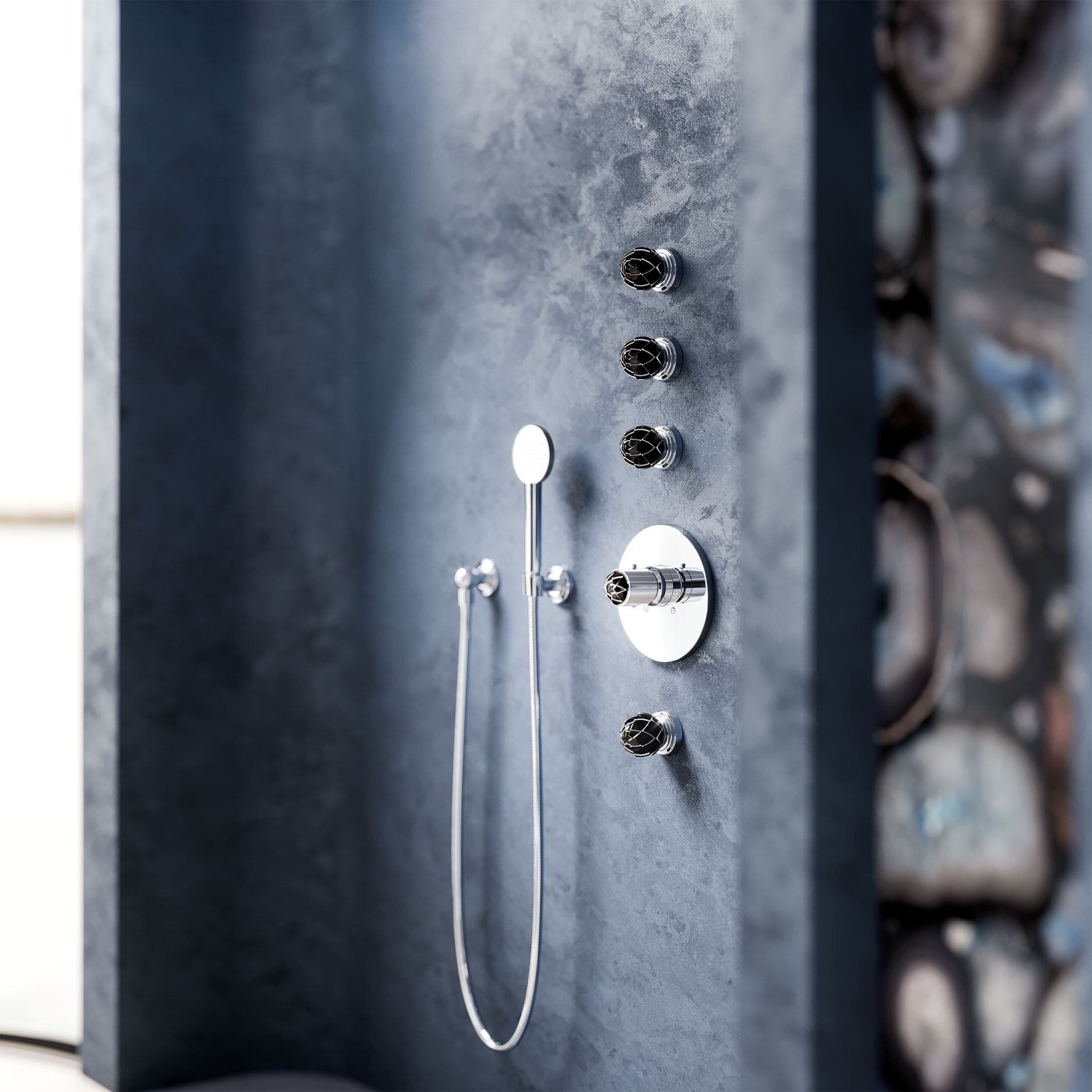 Unterputz-Thermostat und Unterputz-Ventil-Modul mit matten Kristallen | Serie Empire Royal Crystal in Chrom