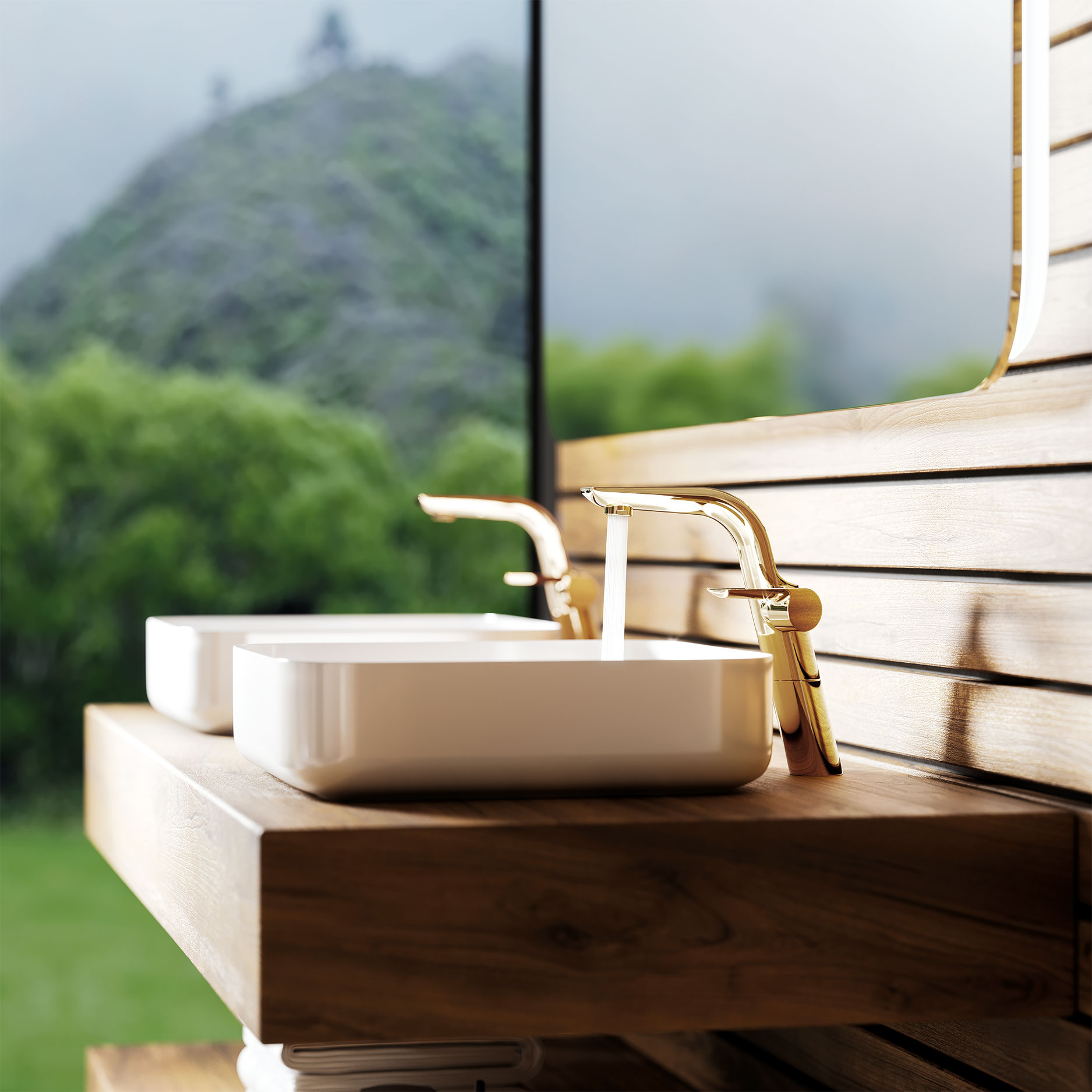 Waschtisch 3-Loch Batterie | Serie Turn in Gold