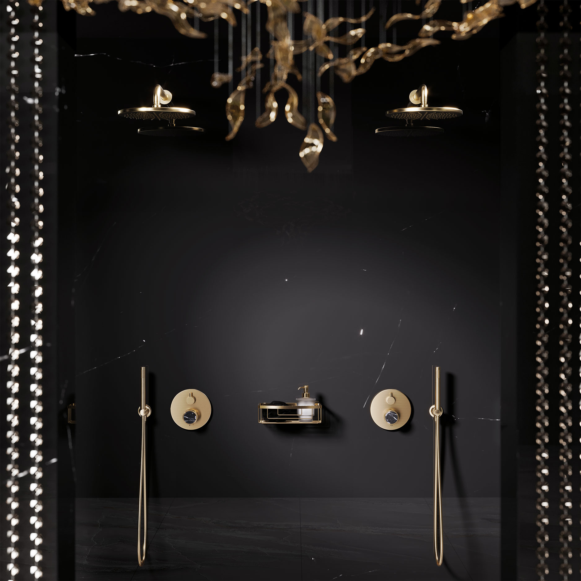 Unterputz-Thermostat mit Unterputz-Ventil-Modulen und Kristallen | Serie Cronos Crystal in Gold