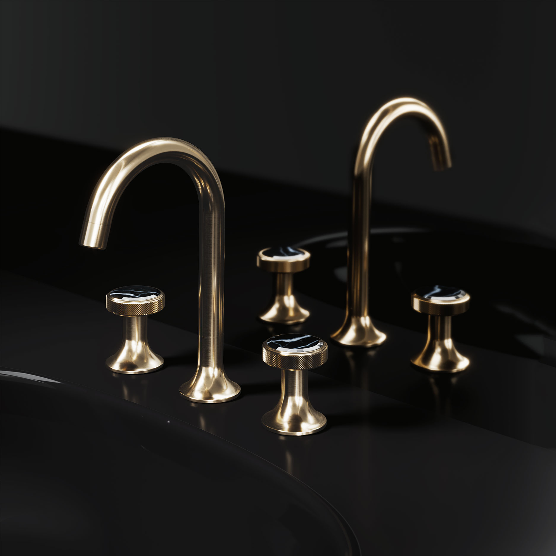 Armaturengriff | Serie Valencia in Edelmessing matt mit schwarzem Marmor