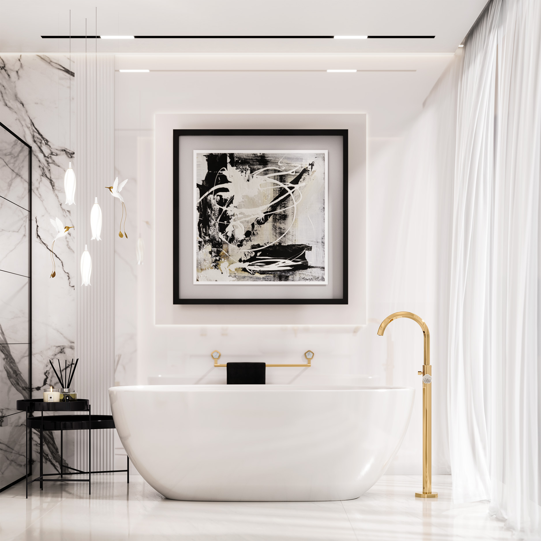 Wannen 1-Hand Batterie und Badetuchhalter | Serie Shadó in Edelmessing mit weißem Türkis