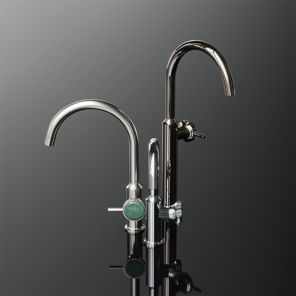 The handles are decorated with these semi-precious stones in subtle silver-green tones – inspired by light green moss, silver poplars and sage. The discreet color of the aventurine is not aggressive, but appeals with its quiet elegance.