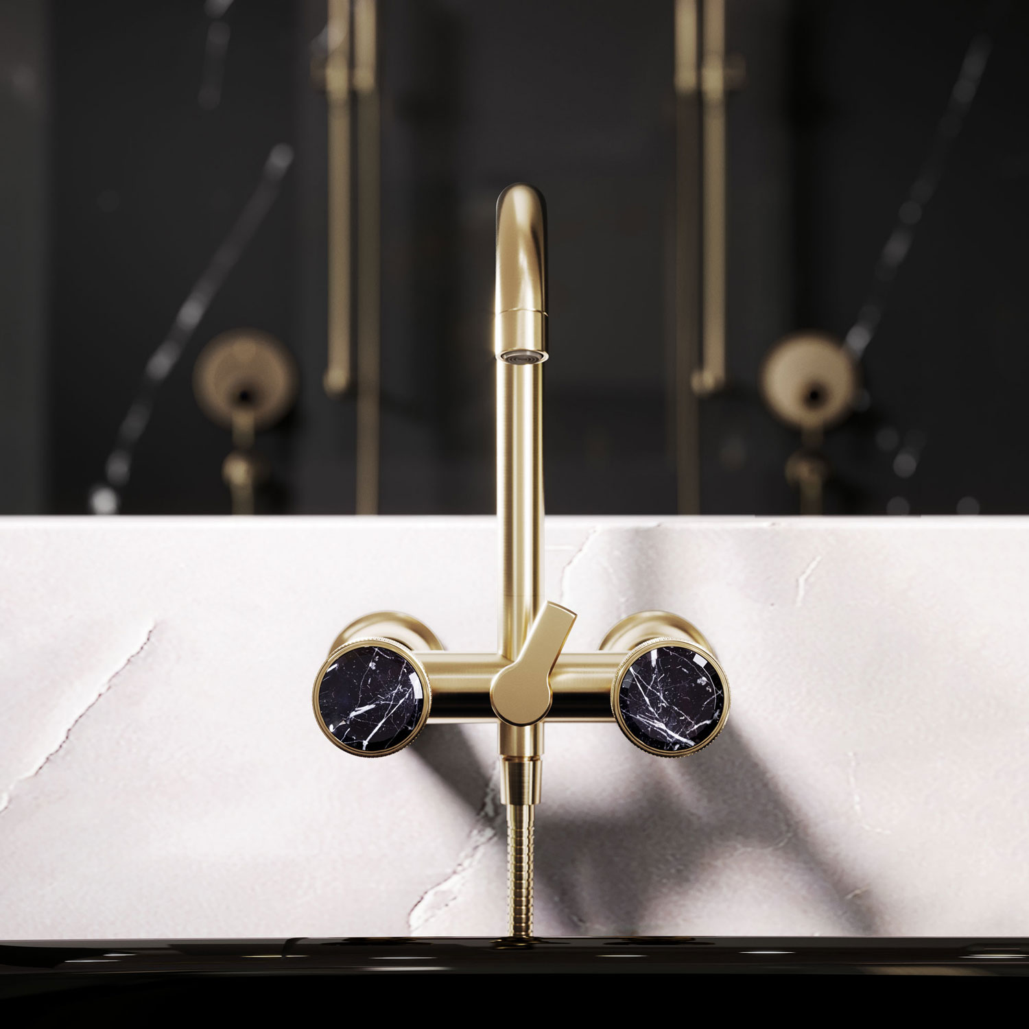 The Avant-Garde Luxury Bathroom by Jörger Design with “Valencia” in Sunshine Matt with Black Marble – Products and Manufacturers