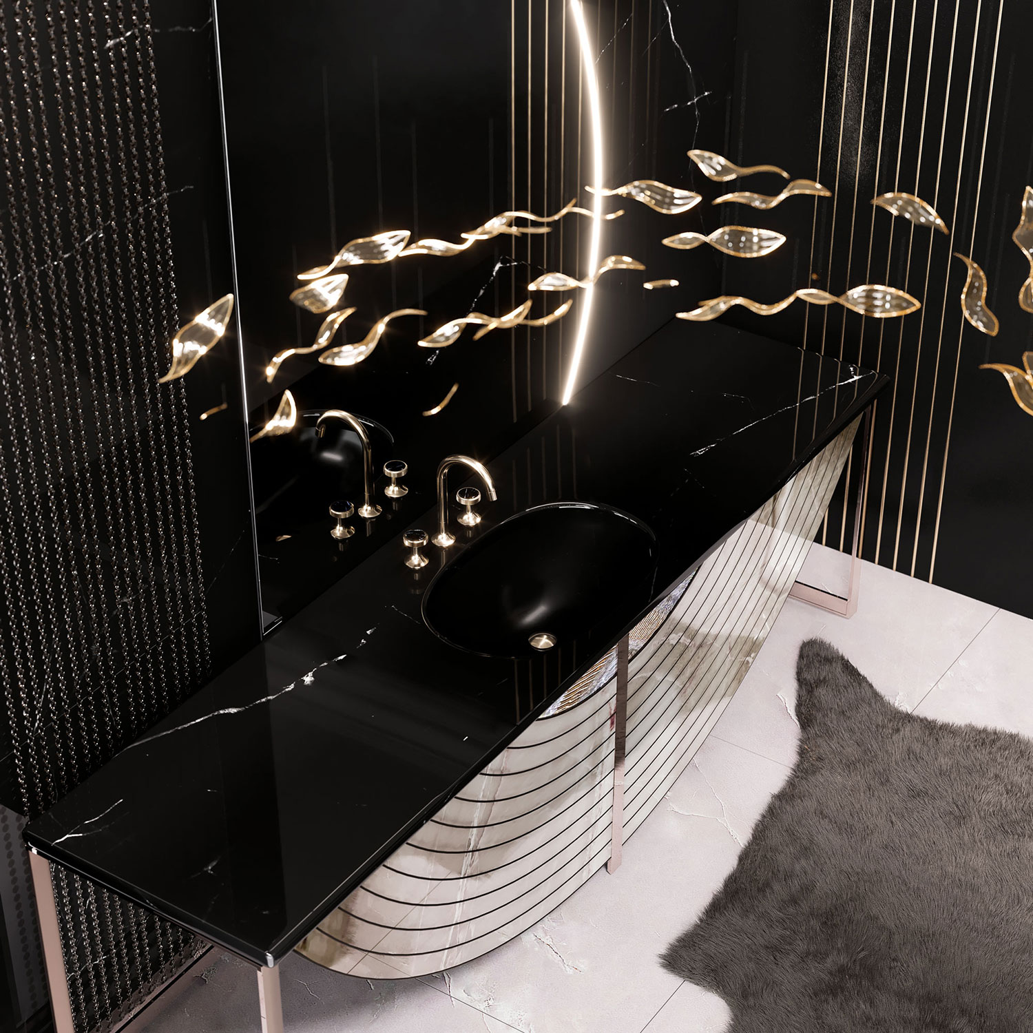 Luxury and Avant-Garde in Black and Gold – The Stage for “Valencia” in Sunshine Matt with Black Marble