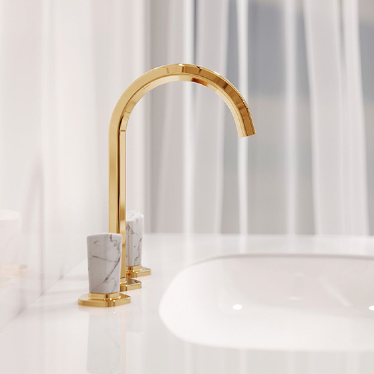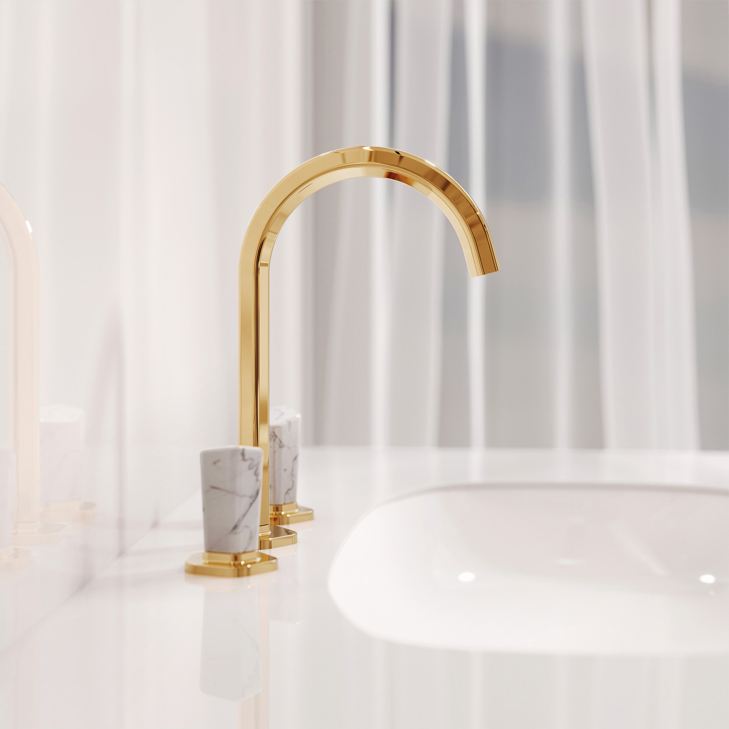 The striking five-sided polygon that runs through the entire collection sets new standards in the world of luxury tap design. It can be found in the spouts, escutcheons and handles. Each of these elements is finely crafted by hand to perfect the elegant look.