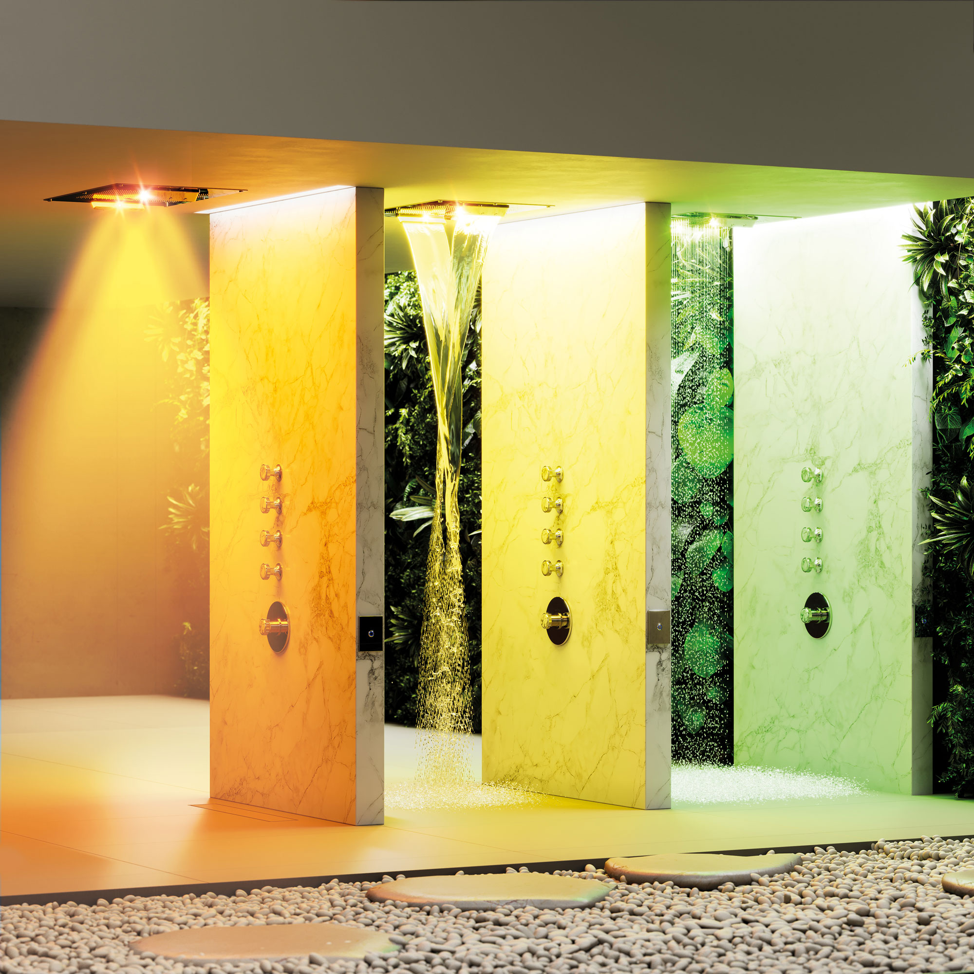 «Rainheaven» от JörgerDesign – топовая душевая система, естественно, с цветотерапией