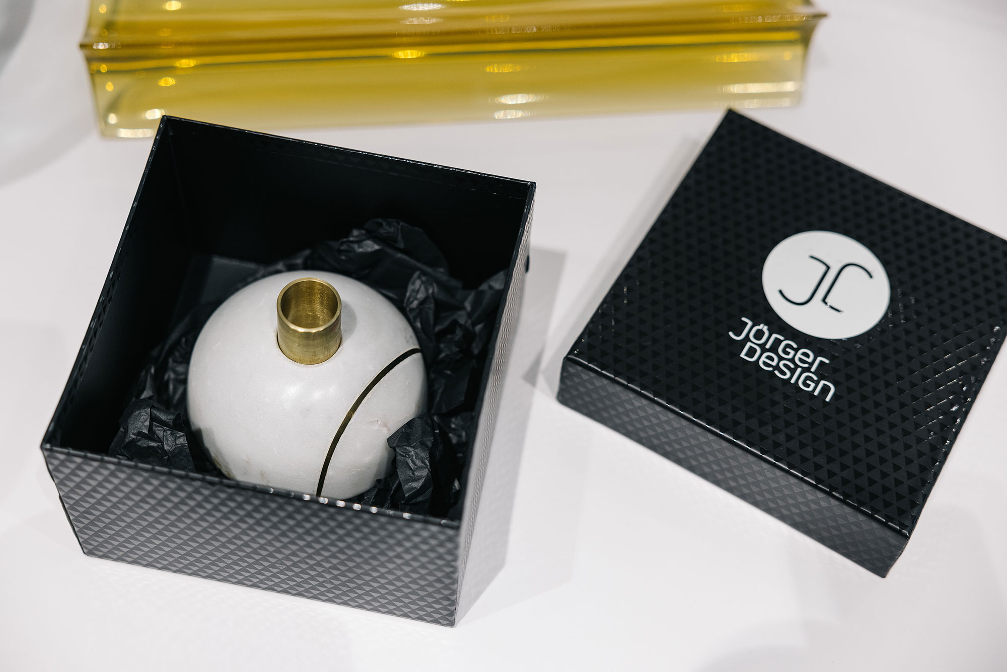 На память о встрече и смесителях с ручками из натурального камня каждый гость получил в подарок от Jörger Design и салона "Интерьер Маркет» декоративный подсвечник из белого или черного мрамора.