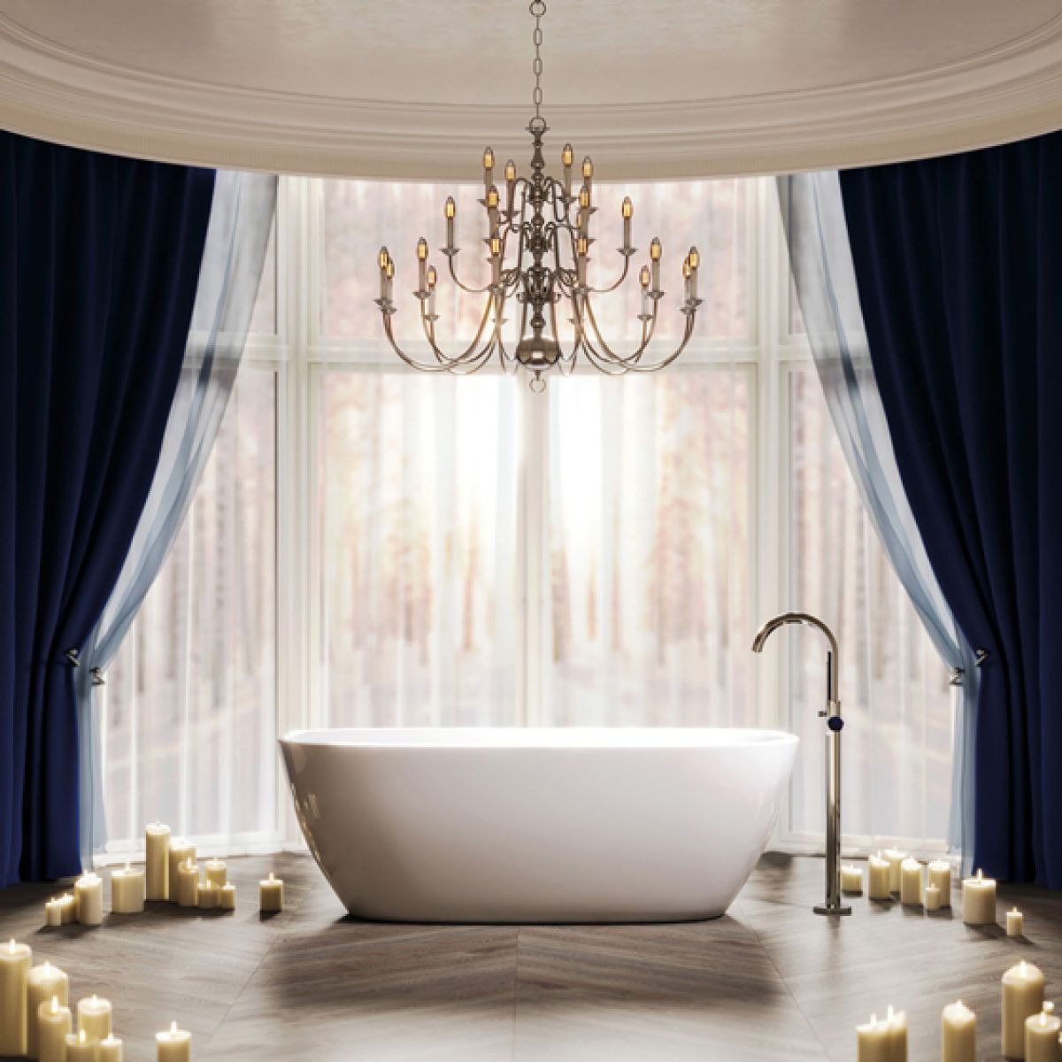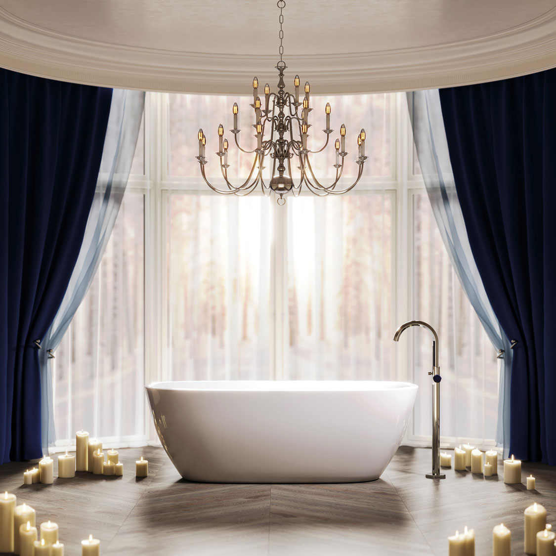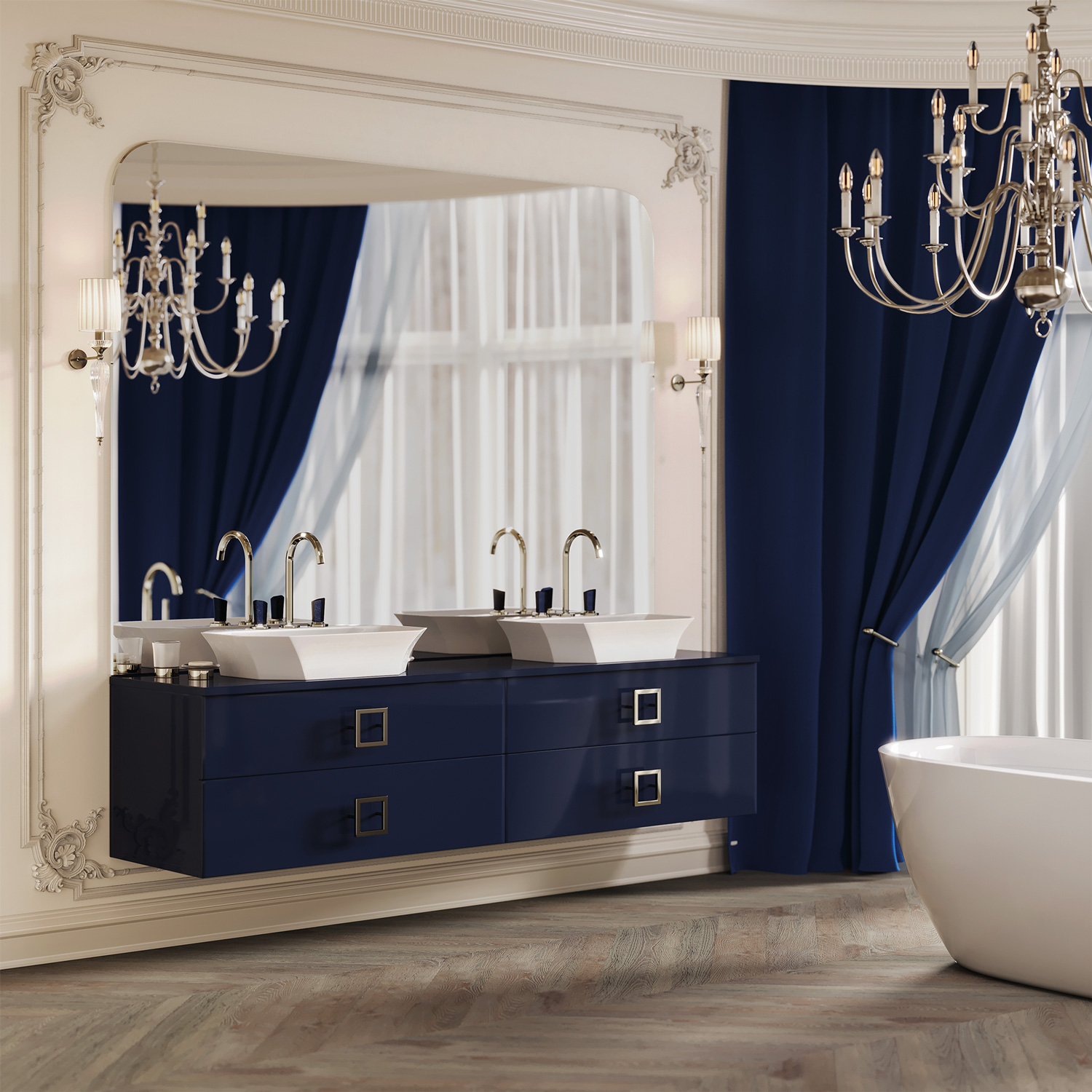 Изысканный аристократичный образ ванной создает тонко подобранный ансамбль декоративных элементов, сантехники и предметов интерьера топовых мировых фабрик: