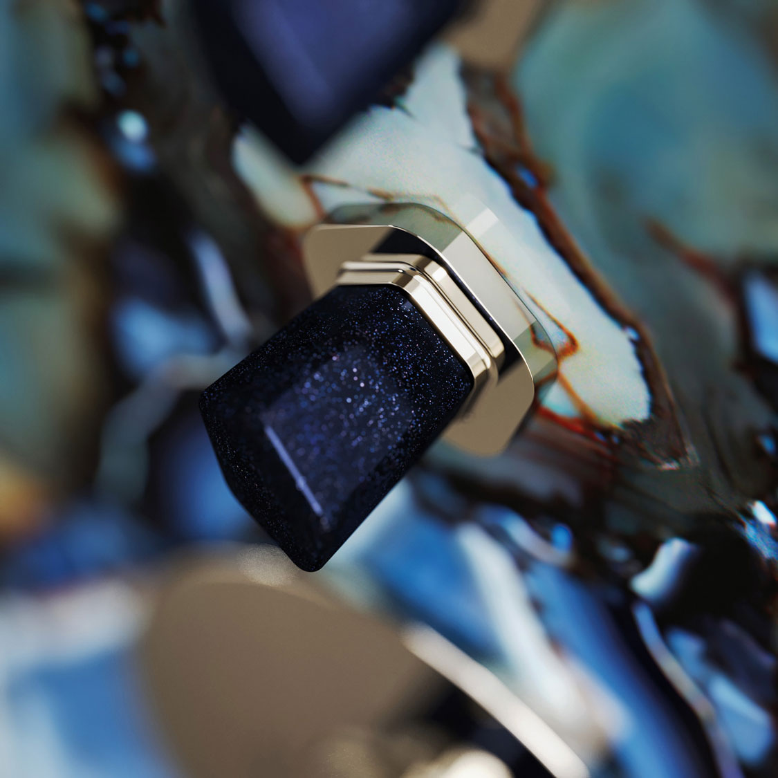 Серебристый никель и искрящийся синий авантюрин – блистательный дуэт для роскошного интерьера