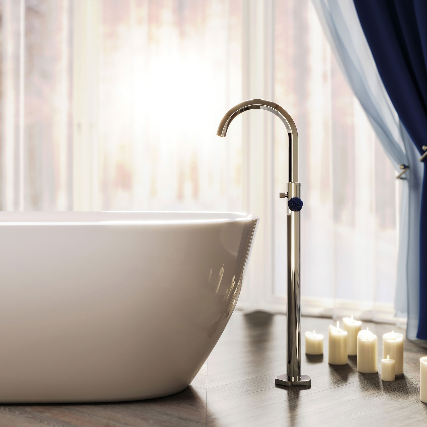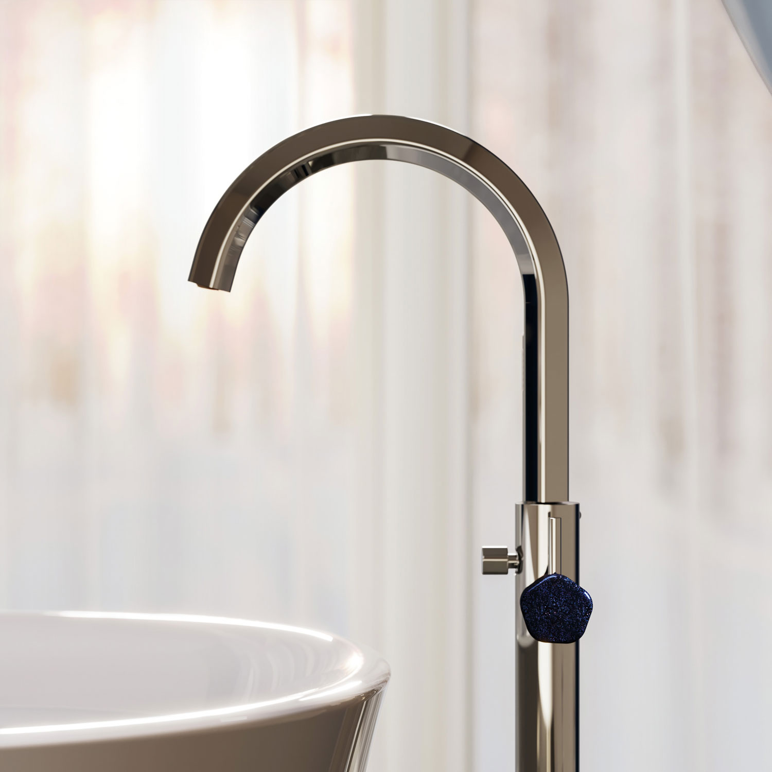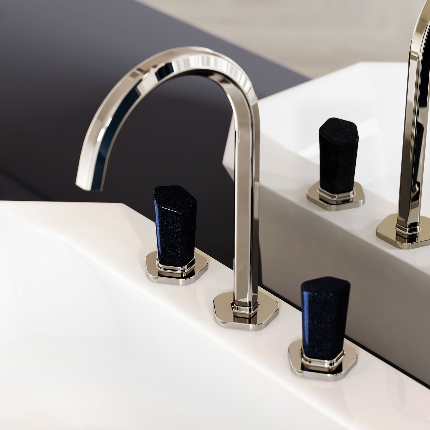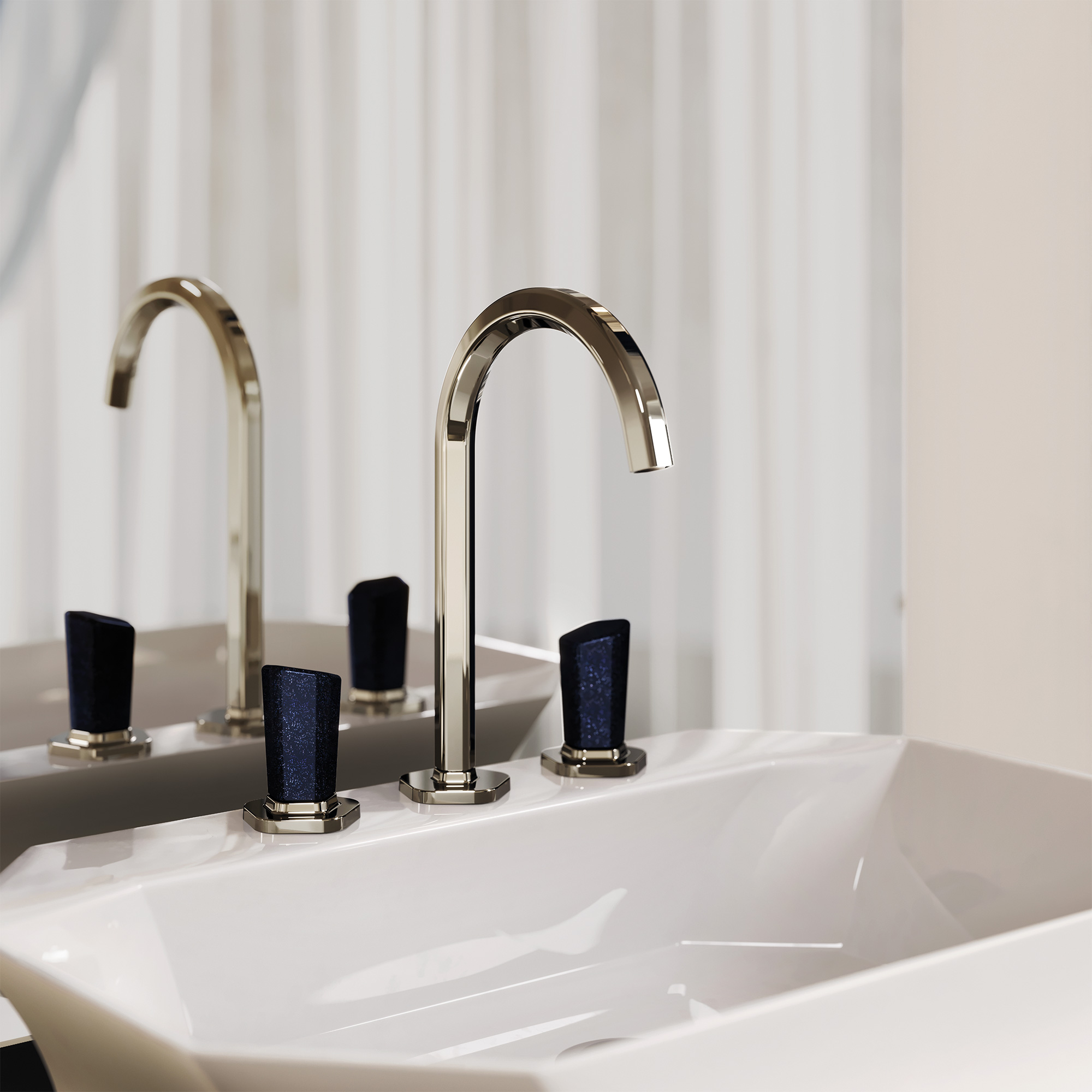 Смесители Shadó с синим авантюрином в сияющем ореоле серебристого никеля обретают благородство дорогих аксессуаров и статус коллекционной вещи.