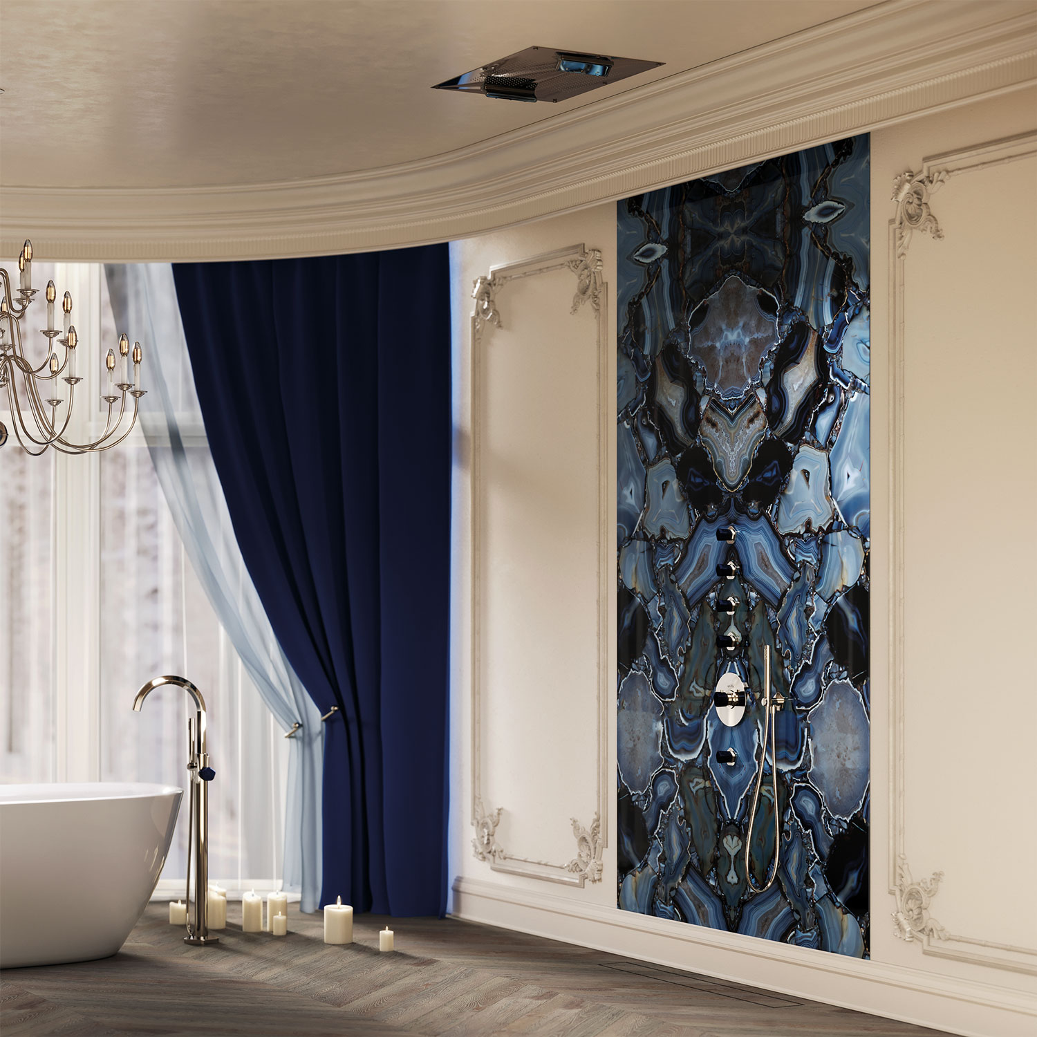 Парадный интерьер ванной с Shadó с природным синим авантюрином : комплектация и производители
