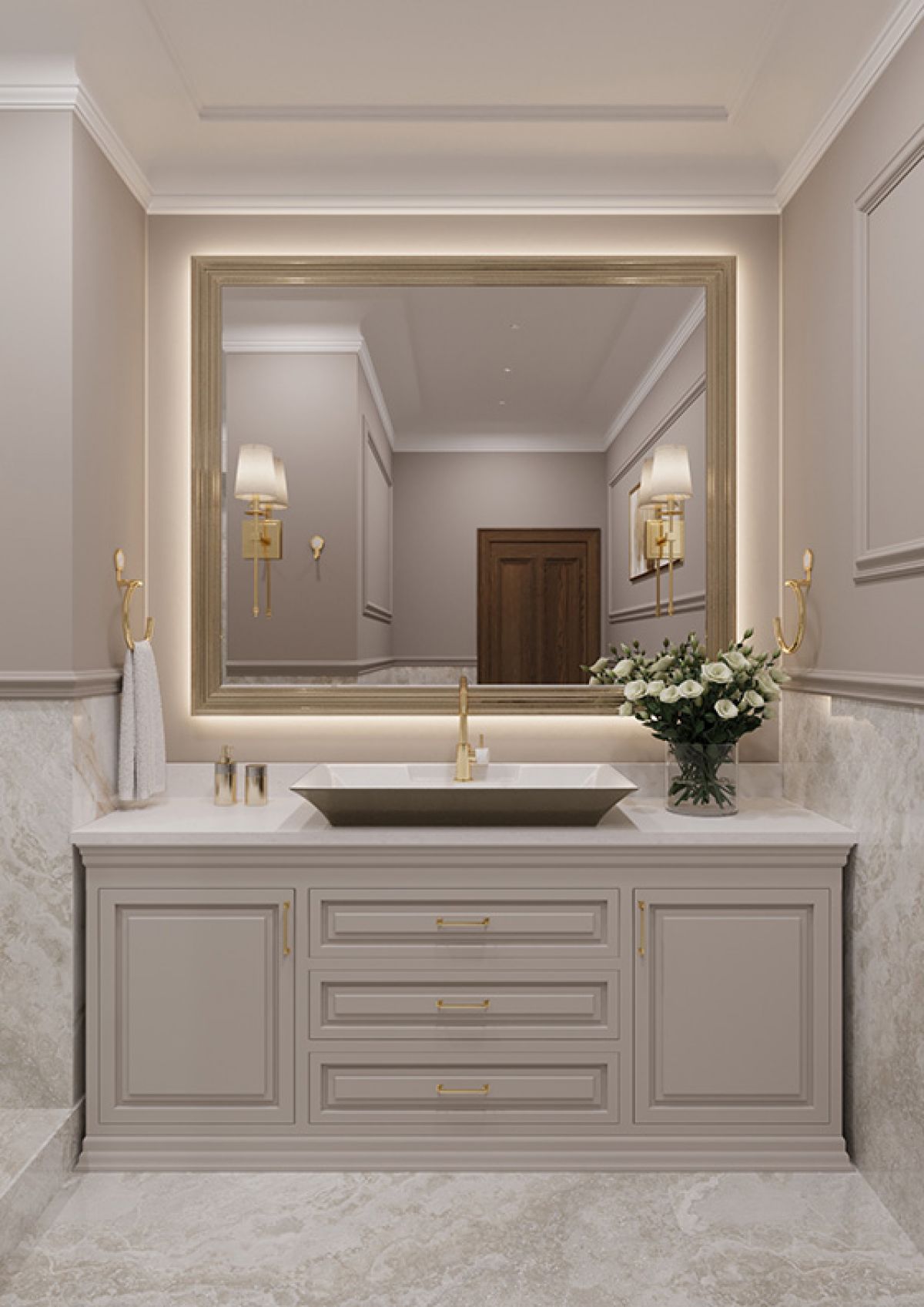 Проект обновления ванных комнат был вдохновлён желанием создать пространство, сочетающее лёгкость, элегантность и благородство утончённой роскоши.