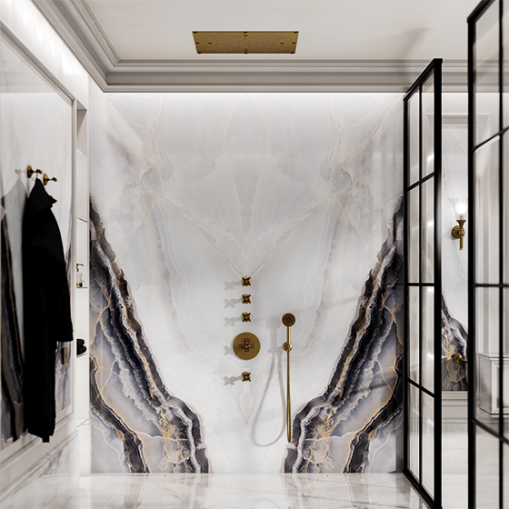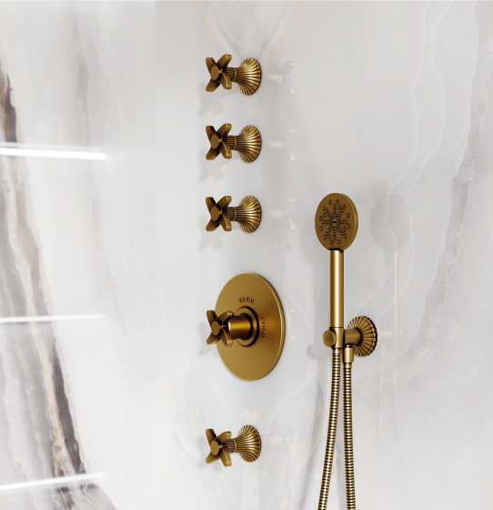 “Cronos” offers a rich variety of fittings for washbasin, bidet, bath tub and shower, which can be combined with two variants of handles: the elegant winding lever handle and the decorative cross handle.