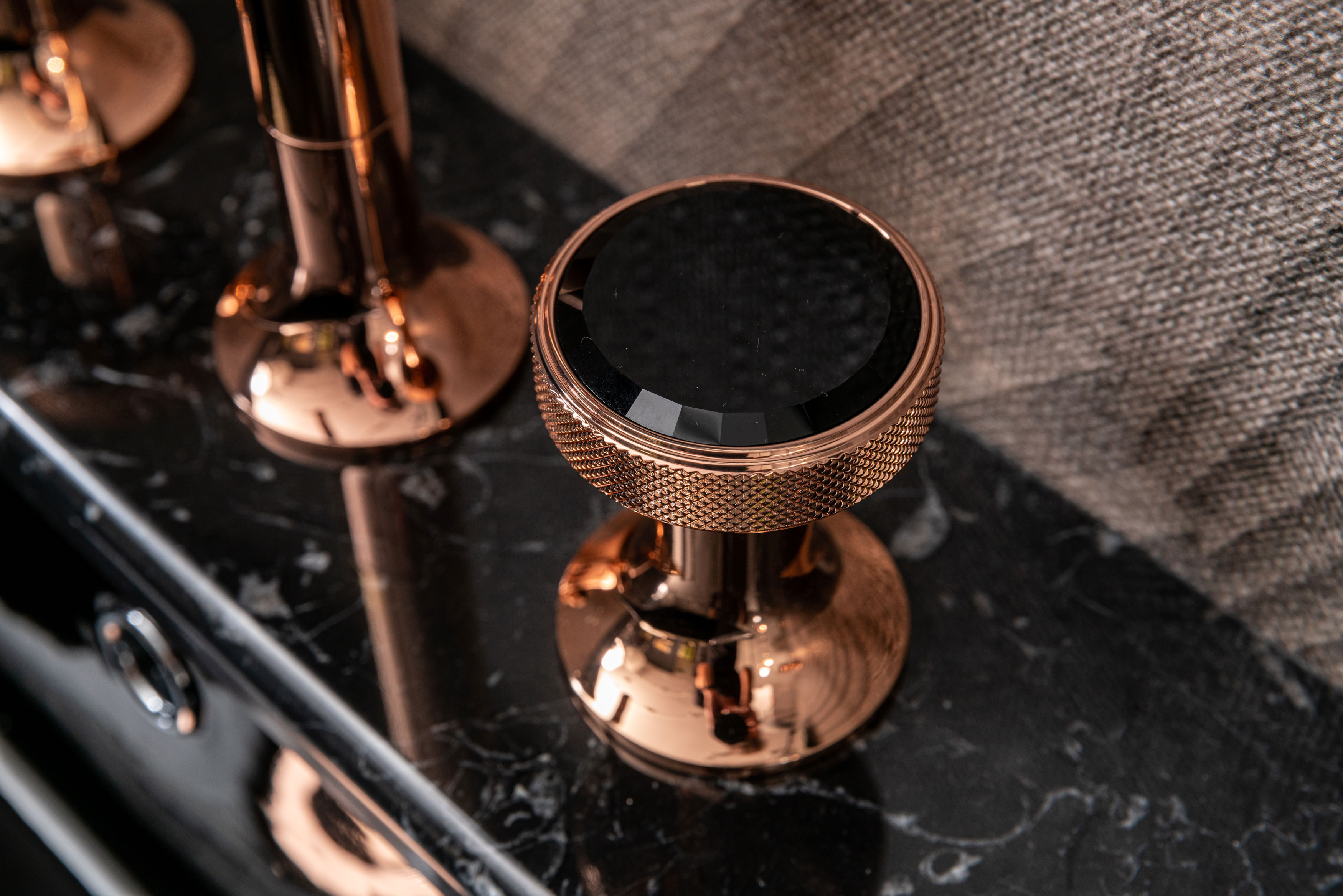 Und zwar „Valencia“ mit schwarzem Kristall – in einem einzigartigem Roségold-Finish. Die Ausstellung ist bei SAN4U (Салон Европейская Сантехника) am Leninsky Prospekt zu sehen.