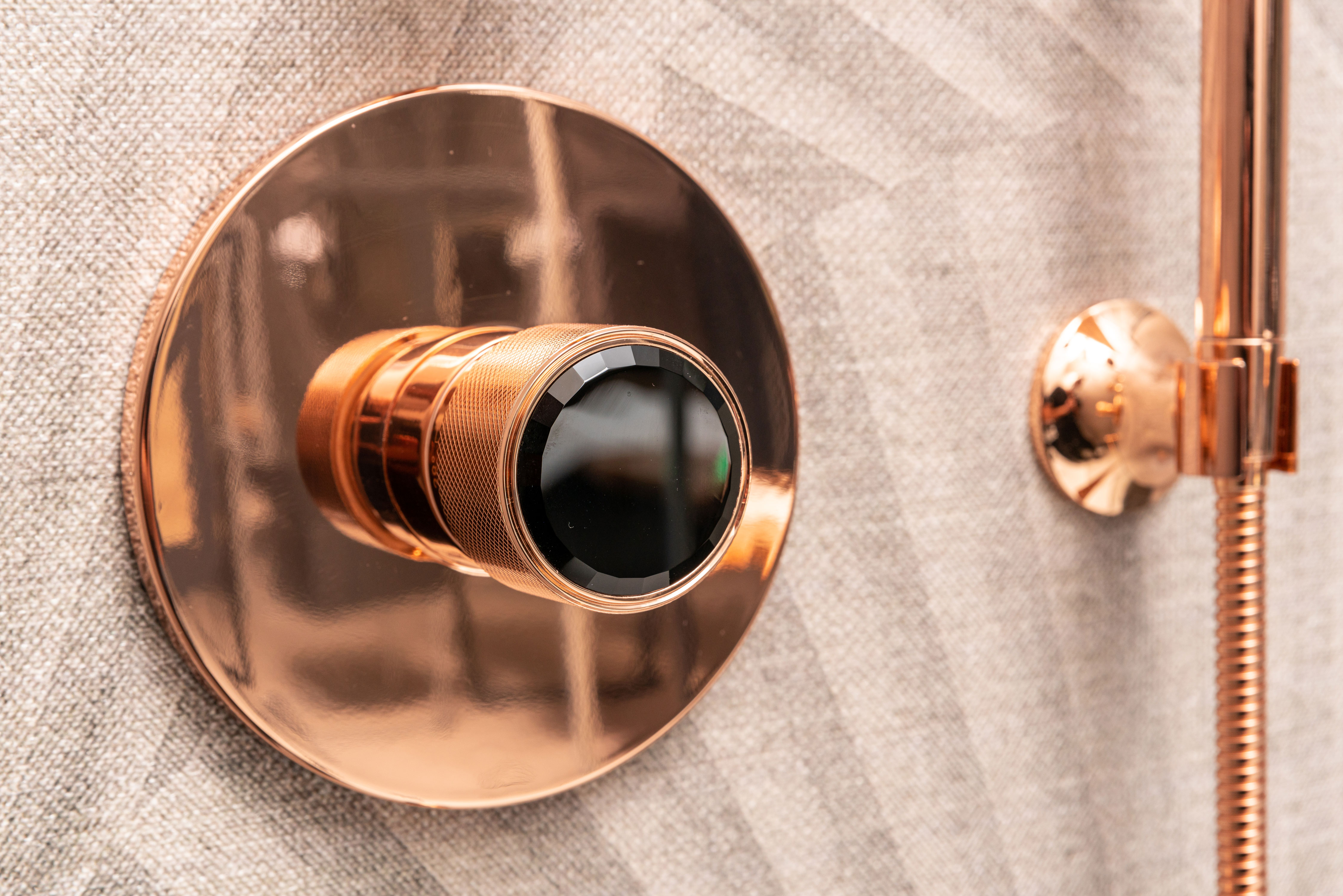 Im Schmuckbereich ist der warme, stimmungsvolle Farbton Roségold schon lange im Einsatz und sehr gefragt. Inzwischen erobert die Edelmetallfarbe jedoch auch die Badezimmer-Welt.