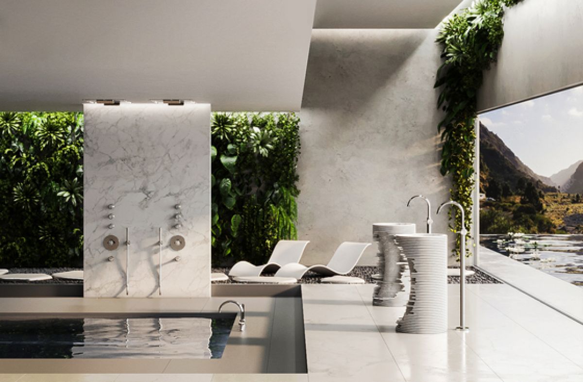 Das Jörger-Kreativteam hat seinen Entwurf eines privaten Spa-Bereichs mit unverwechselbaren Designerprodukten italienischer Markenanbieter ausgestattet: