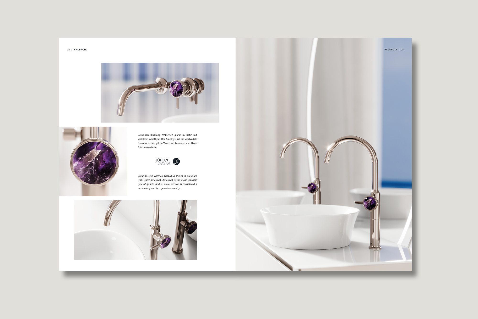 - Jörger-News vom 3. März 2022: „Ein Spiegel purer Ästhetik: Jörger Design präsentiert sommerleichte Badinspiration mit ‚Valencia‘ in Platin mit violettem Amethyst“