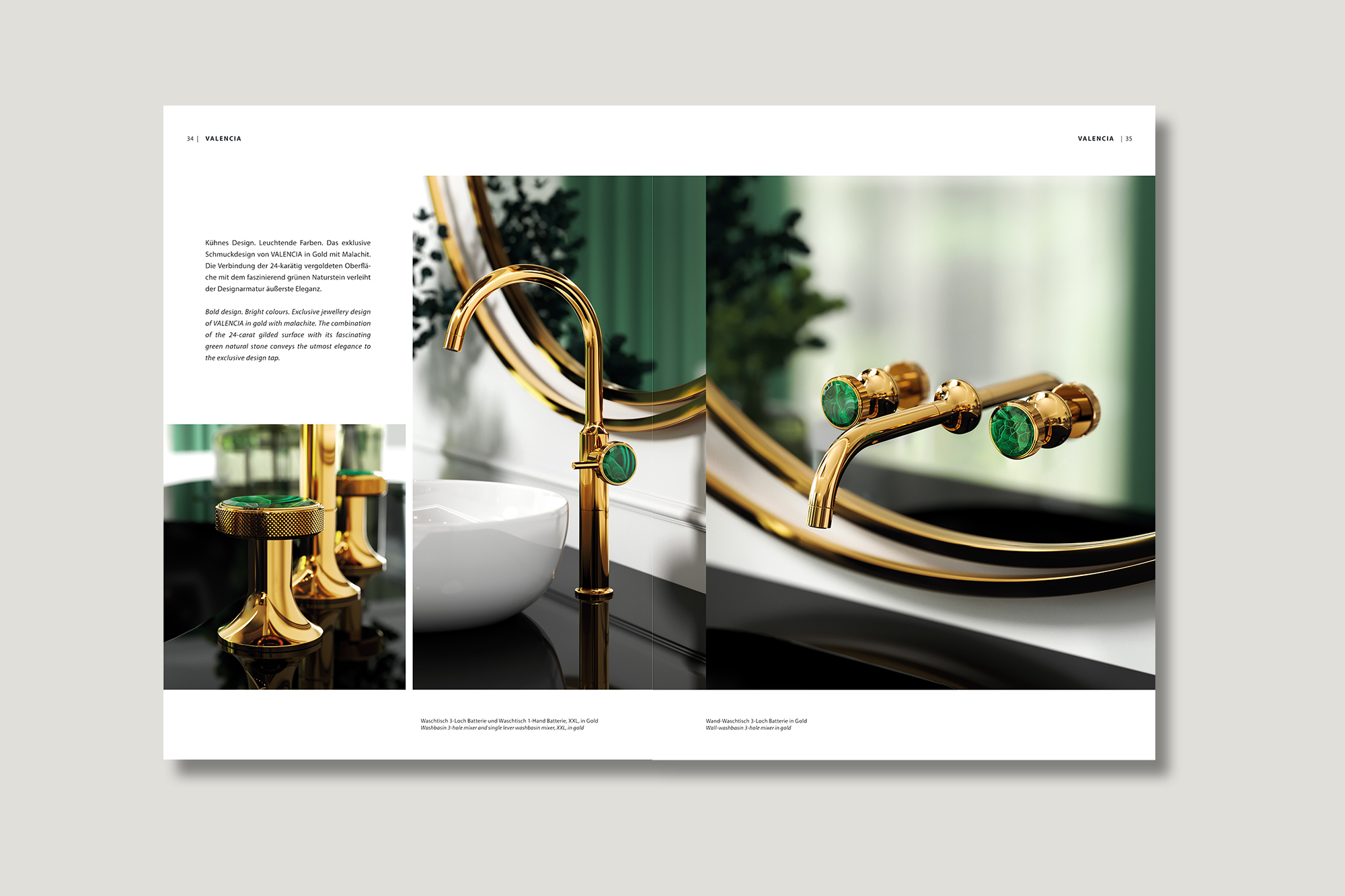 Seit ihrer Einführung sorgt die „Valencia“-Schmuckedition von Jörger für Furore. Bei Designern und Kunden auf aller Welt. Einzigartige, ästhetische Baddesigns setzen die kostbaren Natursteine in sorgfältig ausgewählter Verbindung mit den hauseigenen Oberflächenveredelungen in Szene. Allesamt Meilensteine von erlesener Ästhetik im Bad. Allerhöchste Zeit also für eine neue „Valencia“-Broschüre!