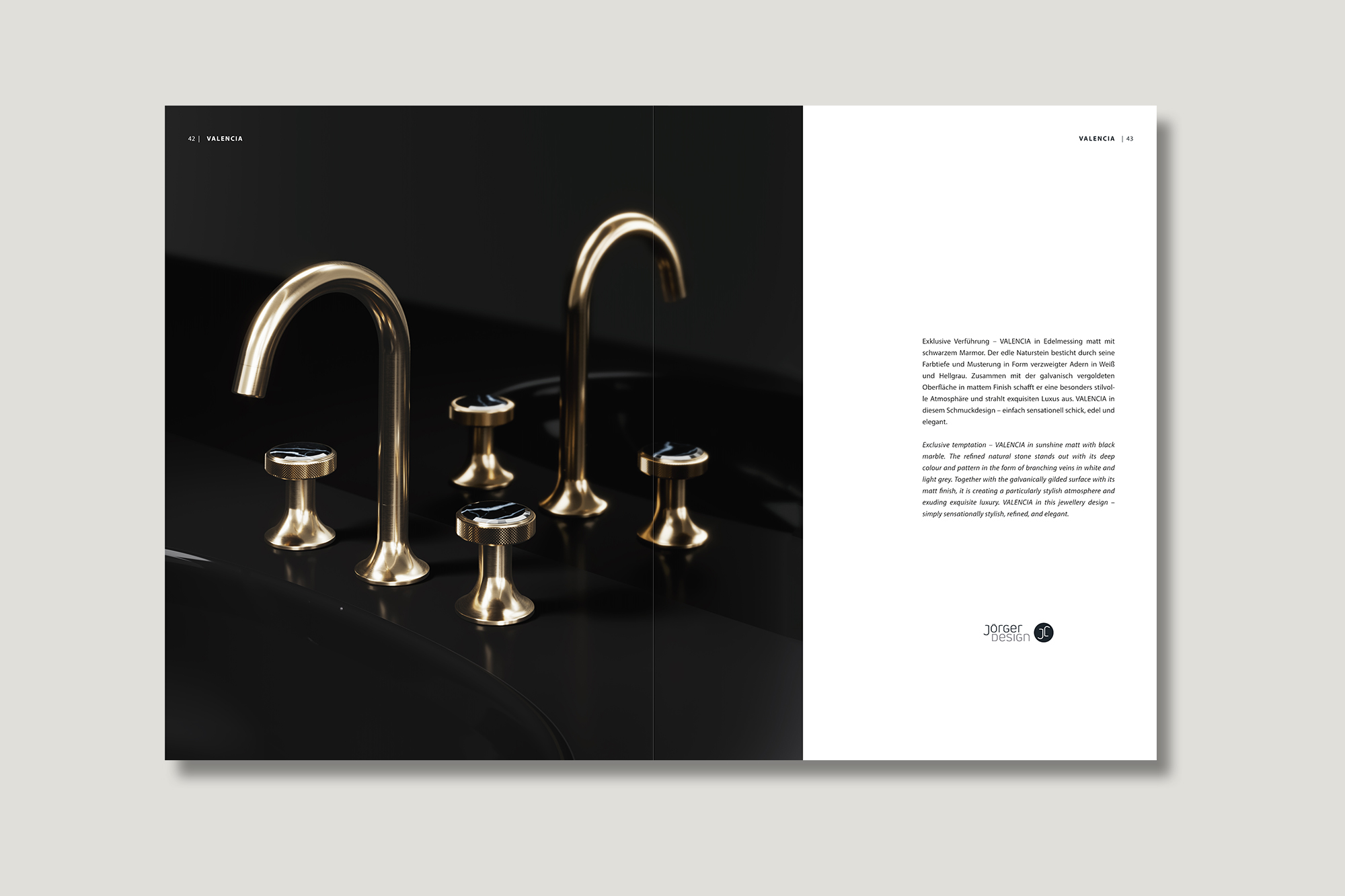 Ästhetik, Kreativität und Qualität sind im Hause Jörger stets oberstes Gebot. Das gilt auch für Kataloge und Broschüren, die das Designunternehmen in aller Regel selbst entwirft, gestaltet und umsetzt. Jörger Design verpflichtet. Auch die neue „Valencia“-Broschüre stellt das auf eigene Art eindrucksvoll unter Beweis.