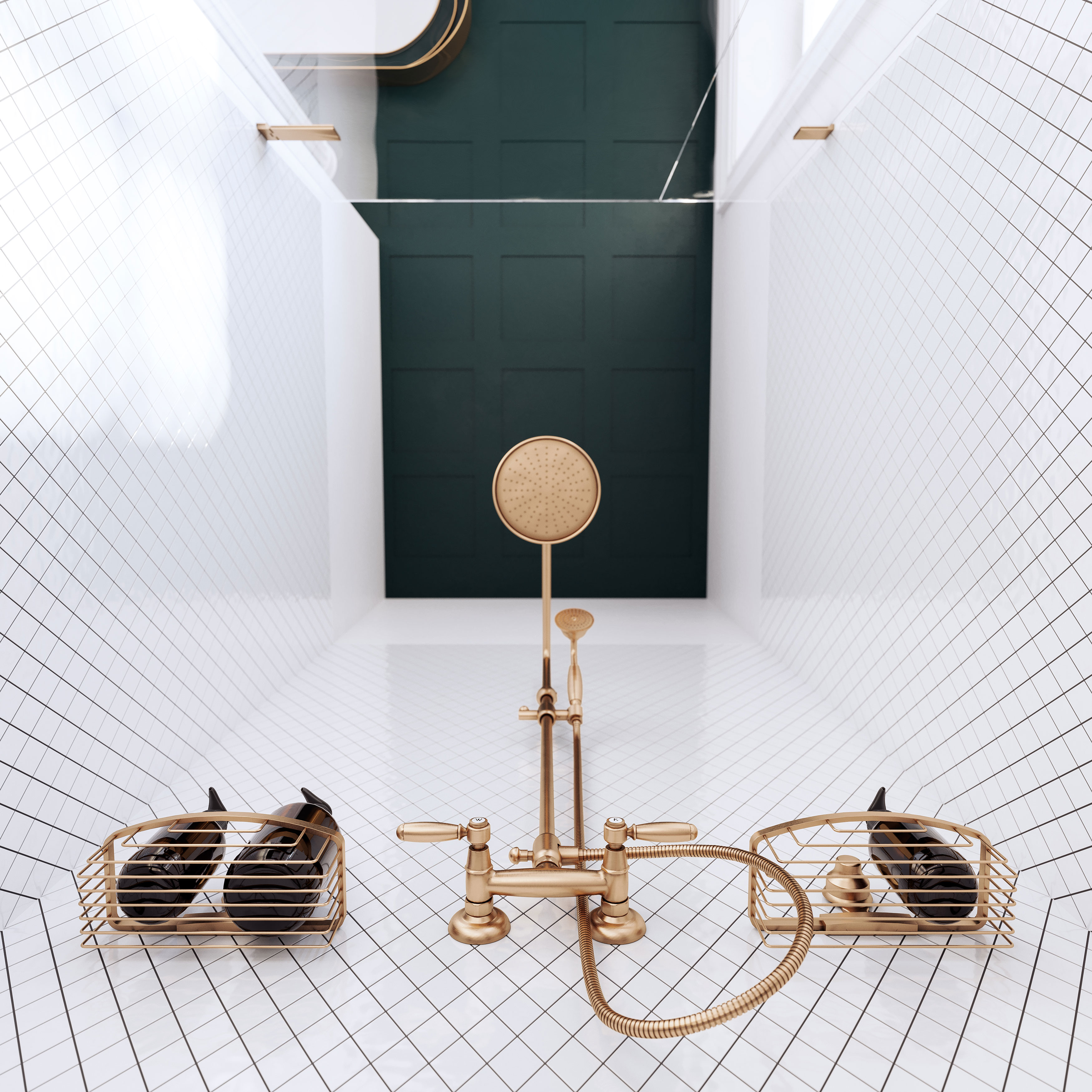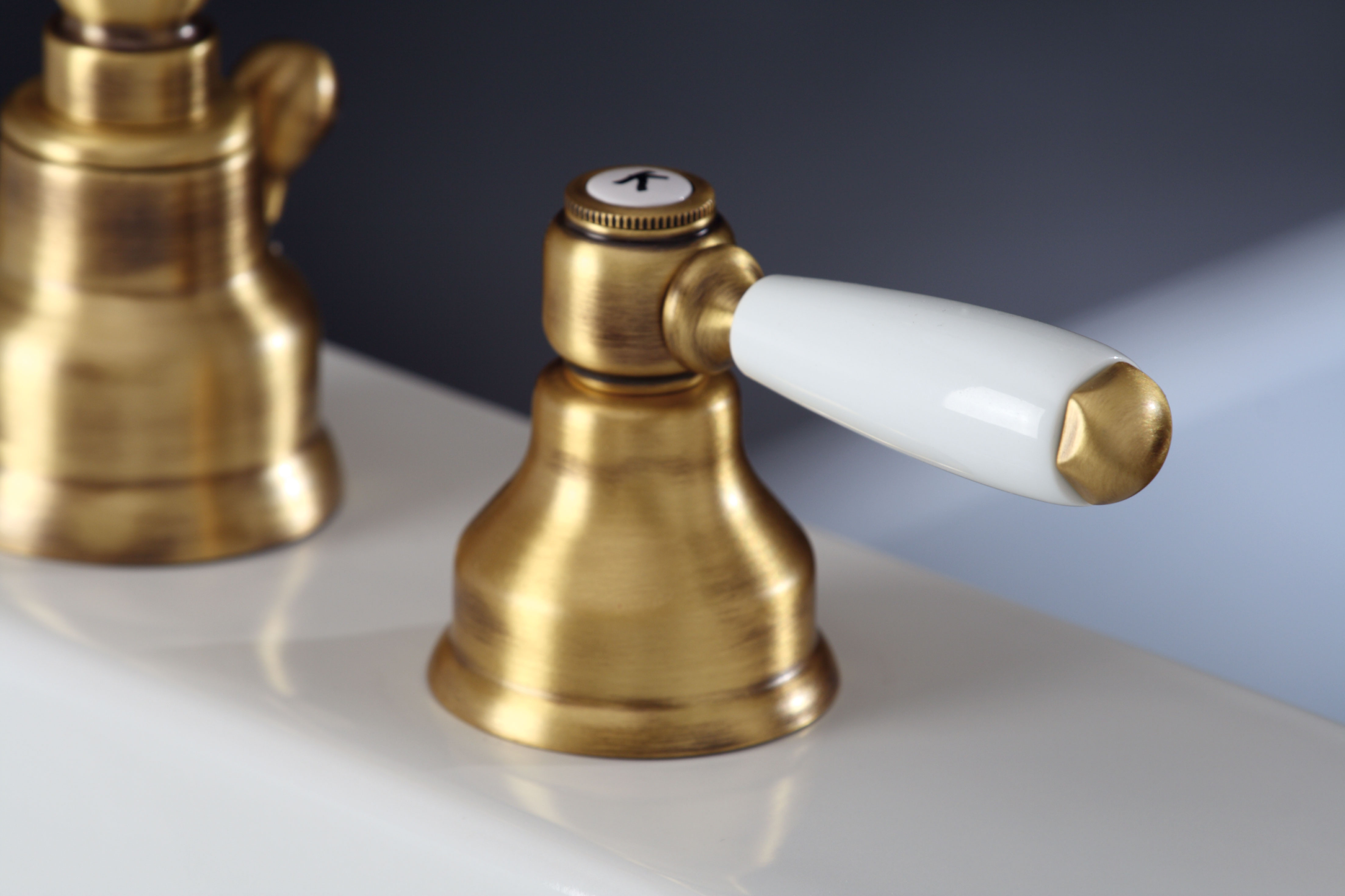 - Armaturen und Zubehör mit Hebelgriffen aus Metall bilden eine weitere Interpretation des englischen Stils der ersten Hälfte des 20. Jahrhunderts.