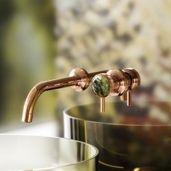 Die Armaturen-Serie „Cronos Crystal“ setzt mit Jörger-Kristallen leuchtende Akzente im Badezimmer.