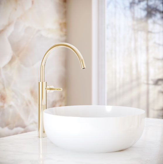 Basierend auf der Grundform des Kreises zählt die formschöne, geradlinige Serie zu den zeitlos modernen und minimalistischen Armaturen-Klassikern.