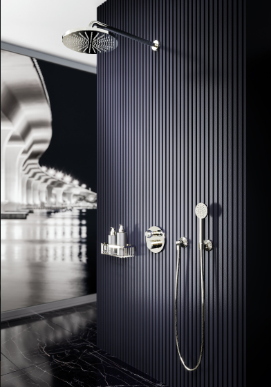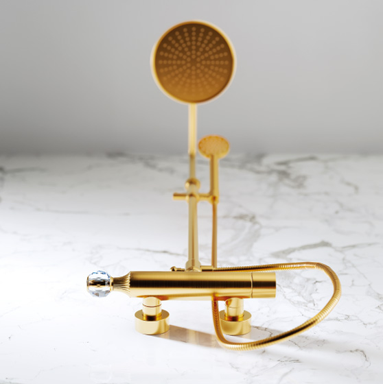 Die Armaturen-Serie „Cronos Crystal“ setzt mit Jörger-Kristallen leuchtende Akzente im Badezimmer.