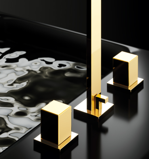 Das zurückhaltende Design der modernen Kollektion stammt von Oliver Jörger. Es verbindet geometrische Formen mit klar definierten Linien. Der Quader bildet das Grundelement. Von zeitloser Eleganz ist der formschöne Auslauf der Armatur.