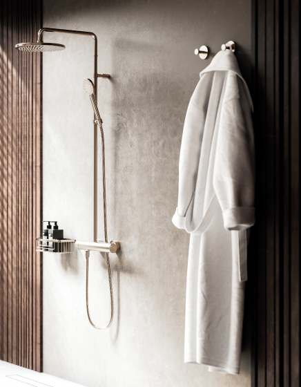 Die Armaturen- und Accessoires-Linie „Exal“ entfaltet in ihrem schlichten, dynamischen Design und ausgewählten Farbwelten einen individuellen Stil im Badezimmer.