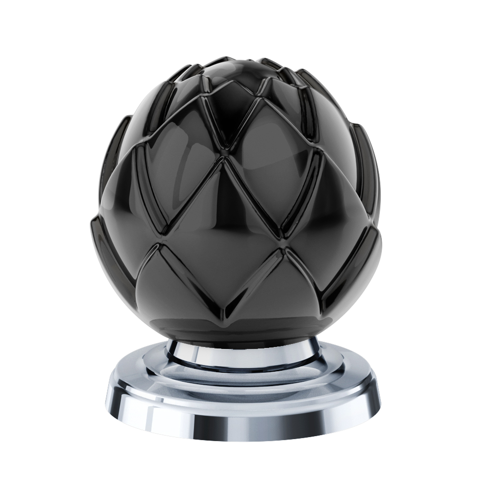 The surface finishes are available in chrome, platinum, matte platinum, precious brass, matte brass, bronze, mink, gold, rose gold, bronze, silver nickel, matt nickel, matt black and matt white. Handles are available in white, black, white with hand-painted gold ornaments and black with hand-painted gold ornament.