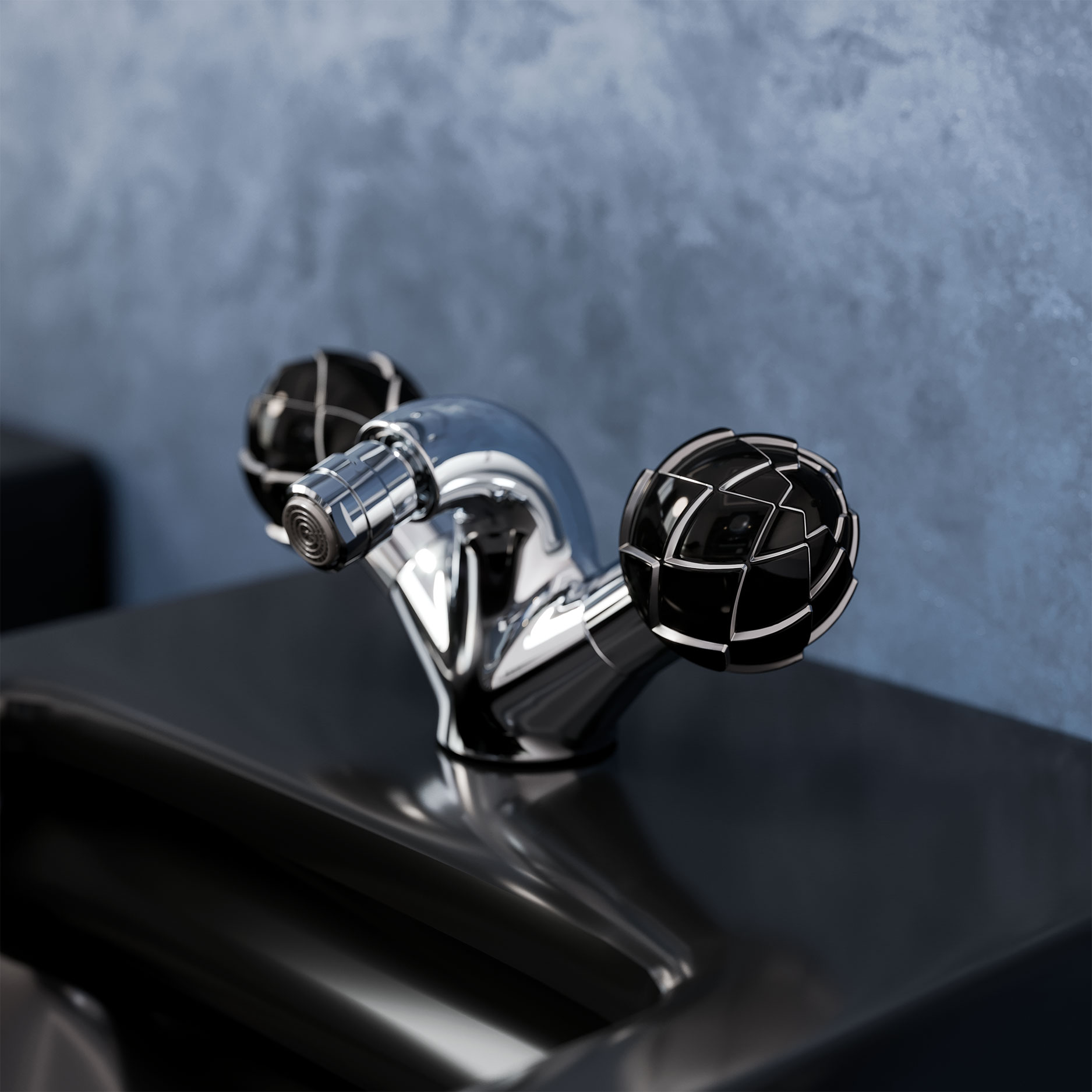 Taps and accessories | series Belledor in chrome with black-platinum porcelain handles