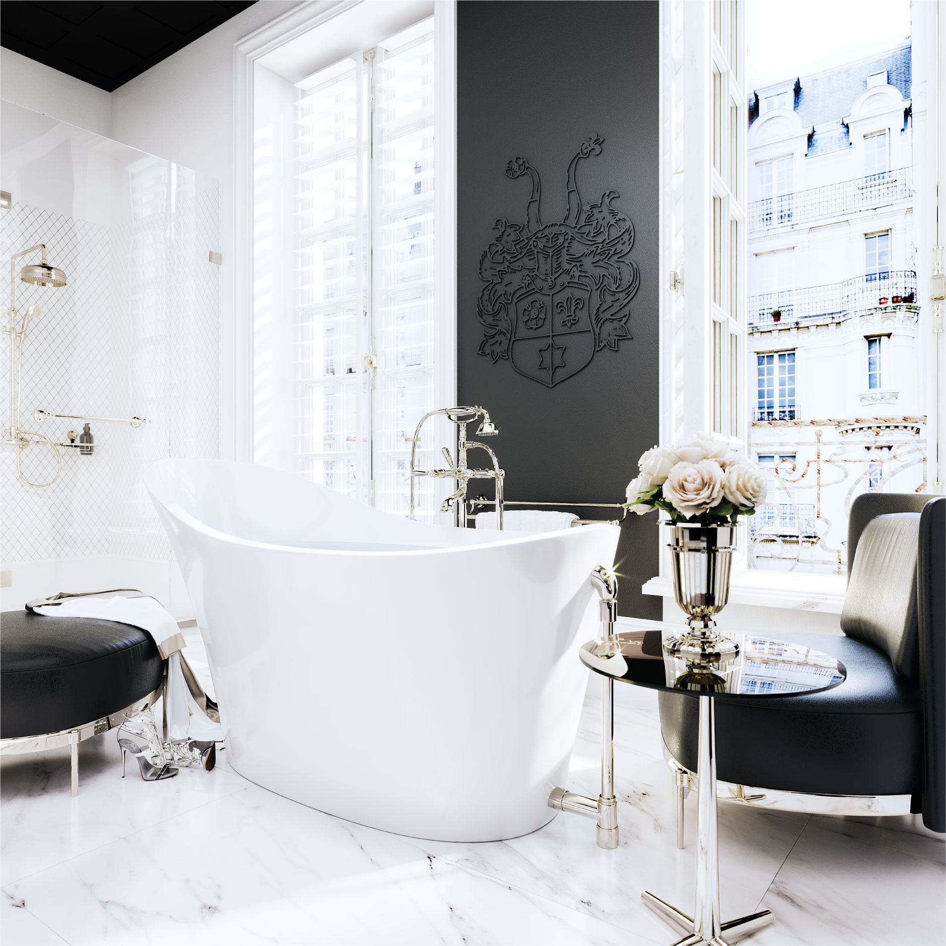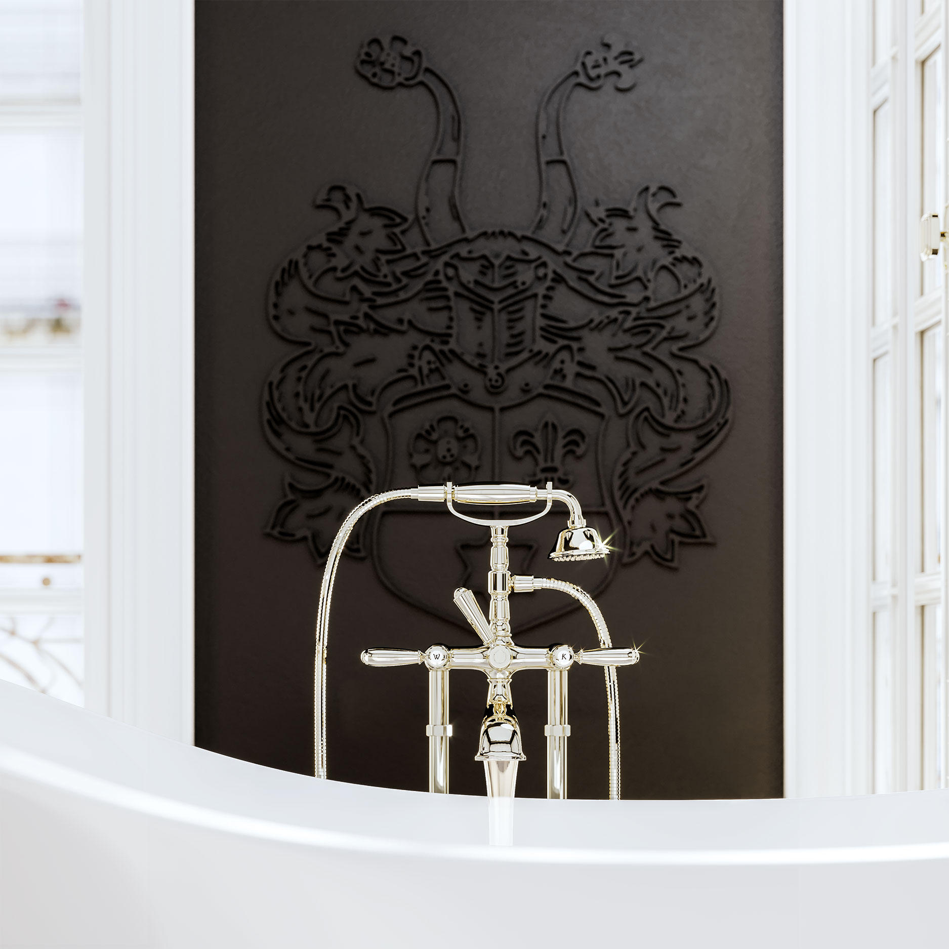 Exposed tub/shower mixer, free standing | series Delphi in polished nickel