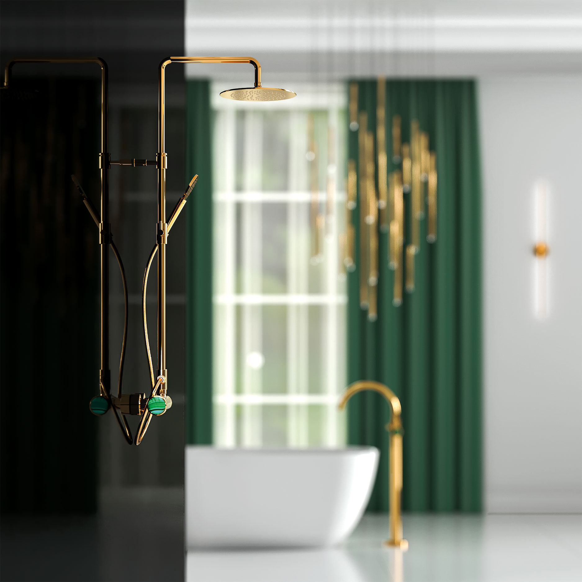 Shower set and tub/shower mixer for supply pipes | series Valencia in gold with Malachite