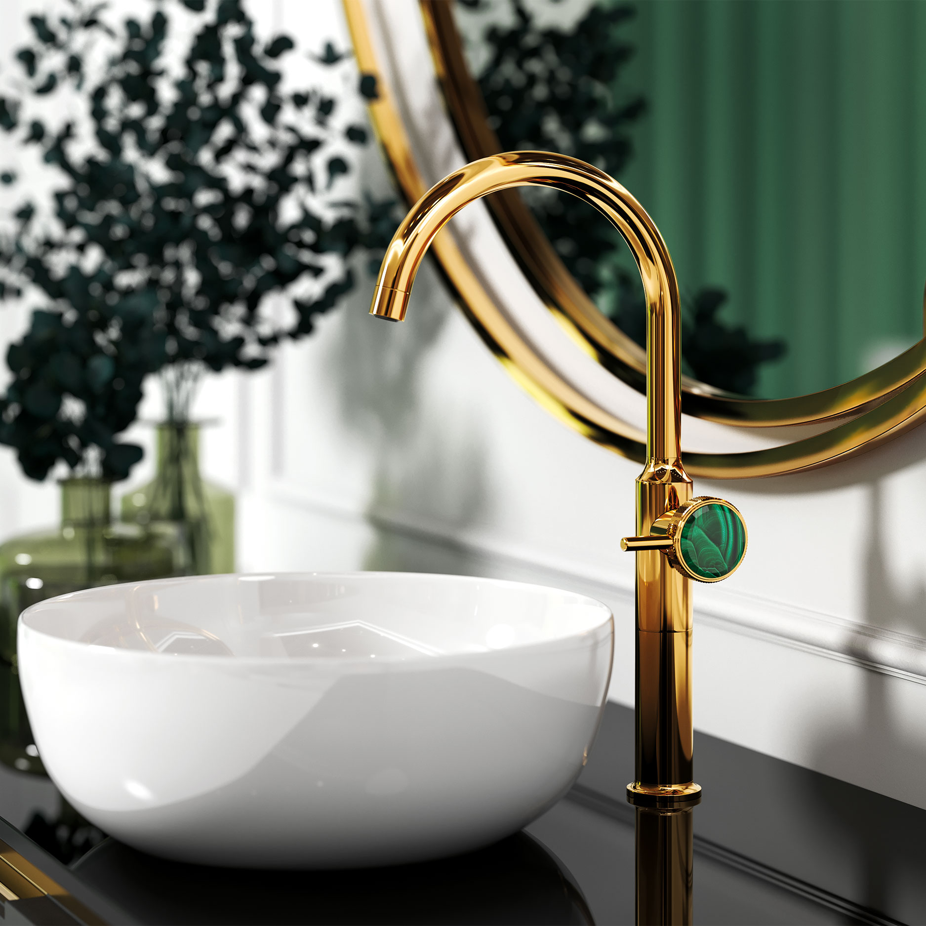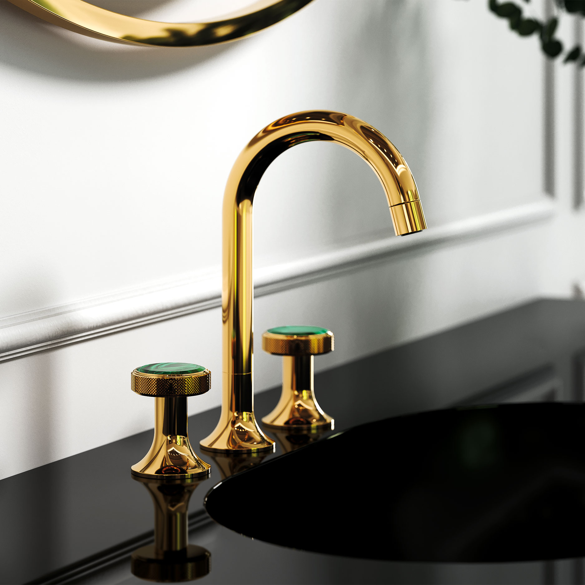 Waschbasin 3-hole mixer | series Valencia in gold with Malachite