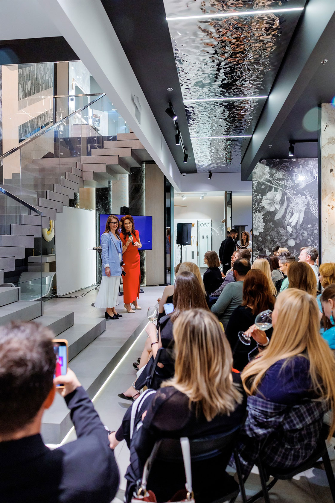 Огненные кадры из горячего цеха сменились зажигательной композицией «Мулен Руж»: Анна Мицых и Юлия Грекова представили гостям эффектную, эмоциональную и информативную презентацию коллекции Shadó. Всего за 7 минут девушки влюбили профессиональную аудиторию в смесители Shadó, в дизайне которых переплелись камень и металл, отголоски эпохи неолита и точеная геометрия ар деко.