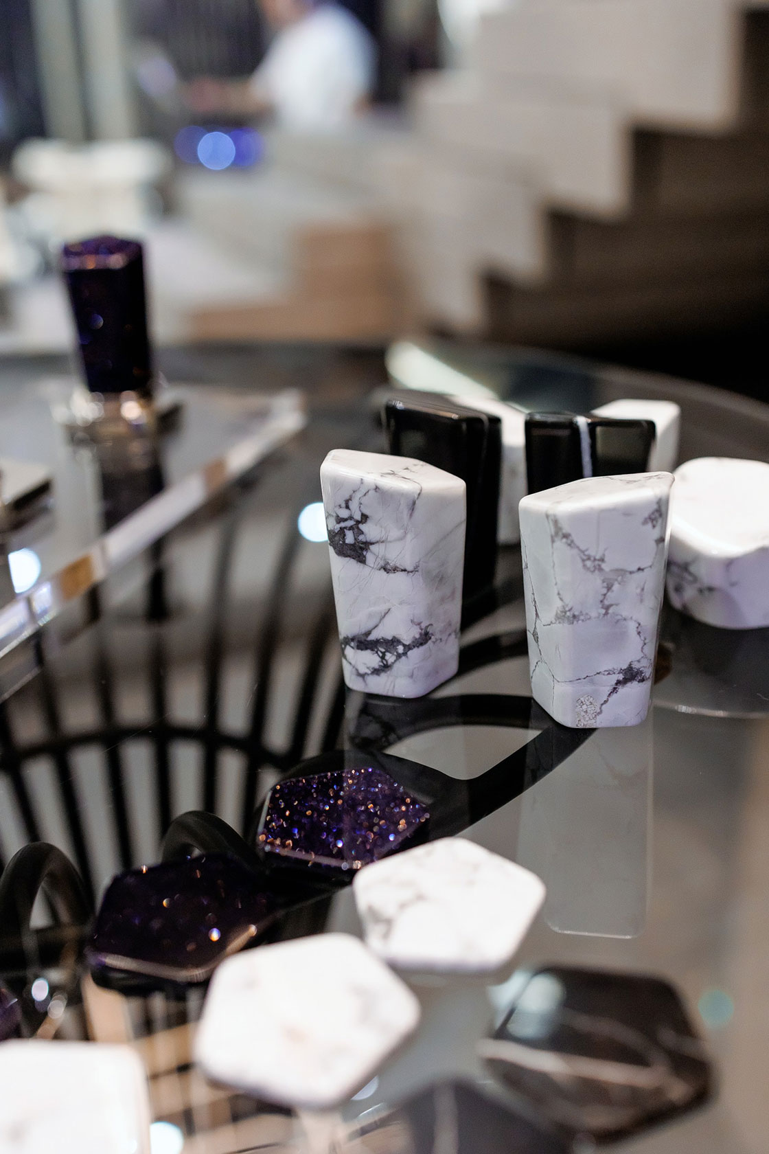 Знакомство с коллекцией Shadó из виртуального пространства переместилось в экспозицию «Европейской сантехники». Здесь гости смогли непосредственно оценить силу красоты и разнообразие стилевых образов Shadó, прикоснуться к фактурной поверхности камня, тактильно и визуально ощутить объемность и весомость камнерезных ручек, точеную геометрию излива, прочувствовать эстетику серии и магию камня.