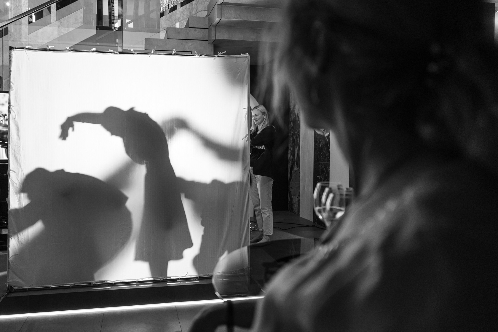 И на презентации Shadó дизайнерам и архитекторам предложили стать участниками необычного хеппенинга – мини-спектакля театра теней. Гости вечера разделились на 5 команд, чтобы в свето-теневой импровизации изобразить свое видение одного из смесителей Jörger Design, представленных в интерьерах салона «Европейская сантехника»: Valencia, Shadó, Turn или Belledor.