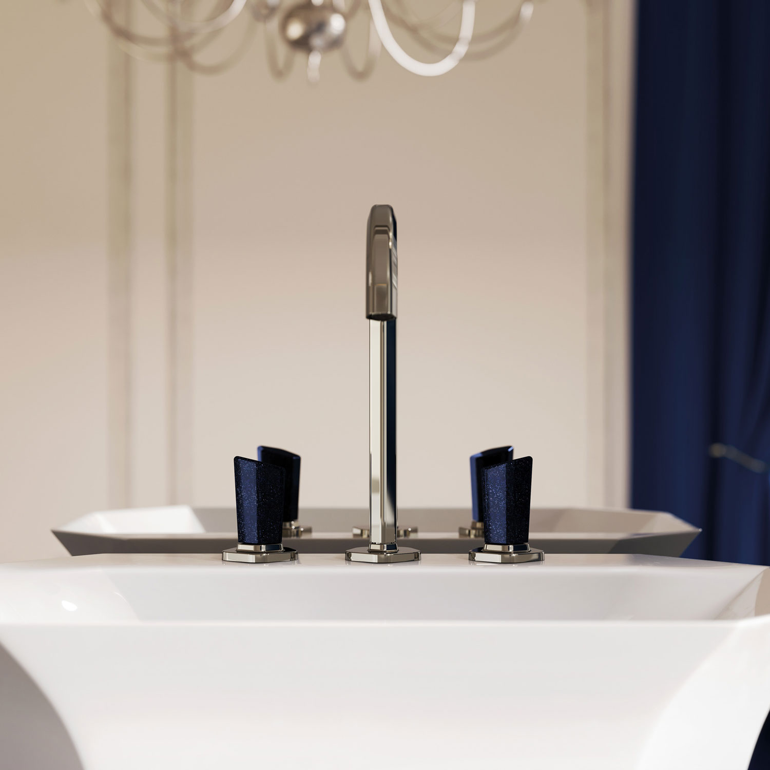 Смесители Shadó с синим авантюрином в сияющем ореоле серебристого никеля обретают благородство дорогих аксессуаров и статус коллекционной вещи.