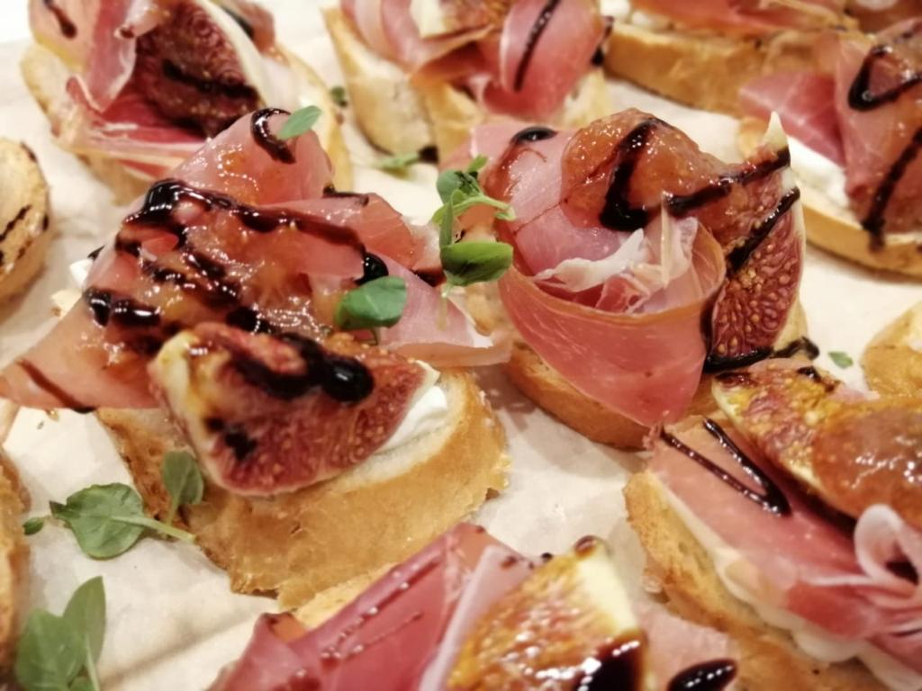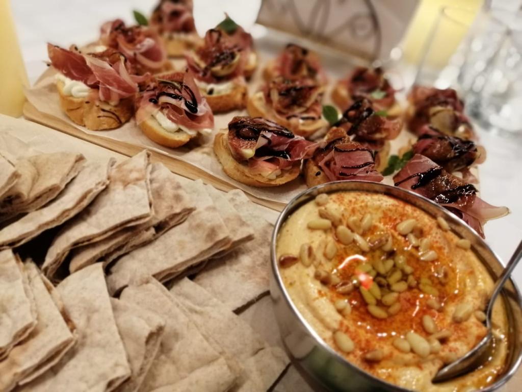 После гостей ждало вкусное угощение от повара-виртуоза Максима Глазкова: хумус, брускетта с инжиром и хамоном, утиная грудка Магре и баклажаны с пармезаном.