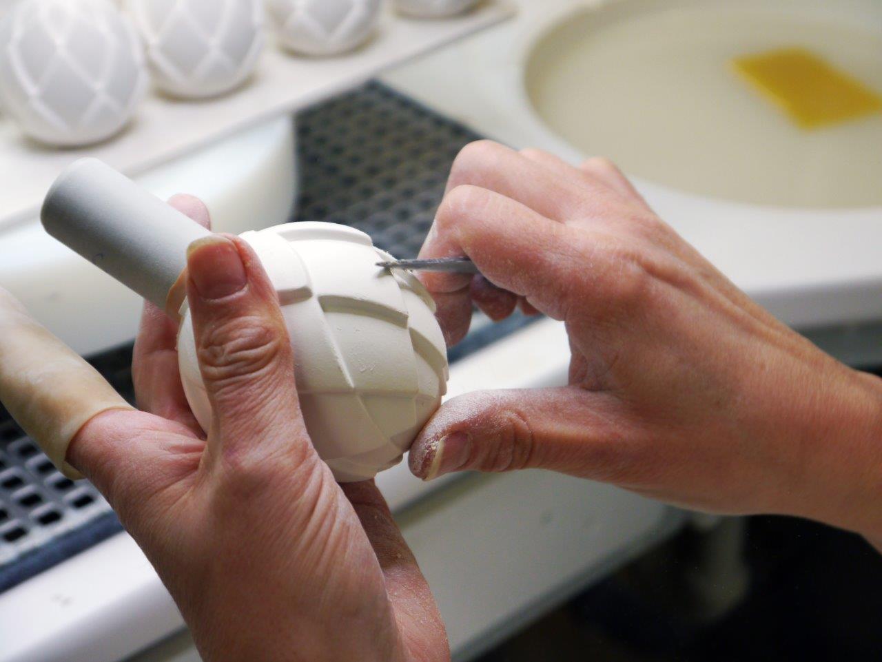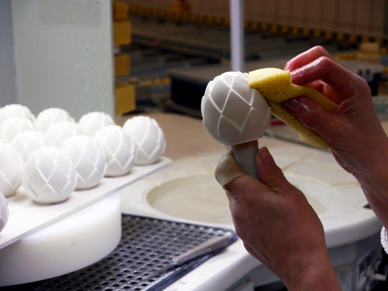 Здесь Вы можете познакомиться с некоторыми фрагментами поэтапного изготовления фарфоровых элементов серии «Belledor». Каждый декоративный бутон ручки отливается отдельно, а в завершение фарфоровым формам вручную придают выразительный рельеф.