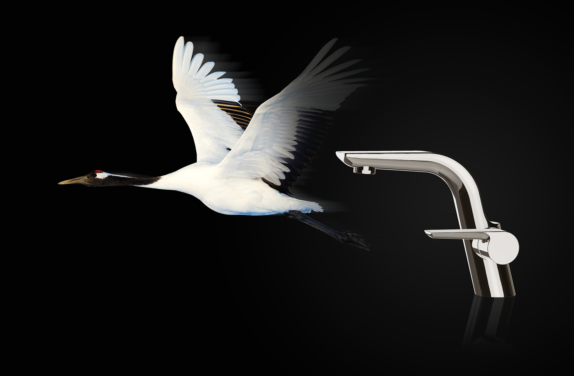 Flowing lightness characterises the “Exal” bathroom collection. The elegance of a crane in flight inspired Oliver Jörger to this modern design. The clear, simple shape with the curved spout gives the bathroom fitting its dynamic style. The many hand-made, exclusive glossy or matt finishes form the basis for various design styles that give the bathroom an individual character and unique ambience that may range from simple to luxurious.
