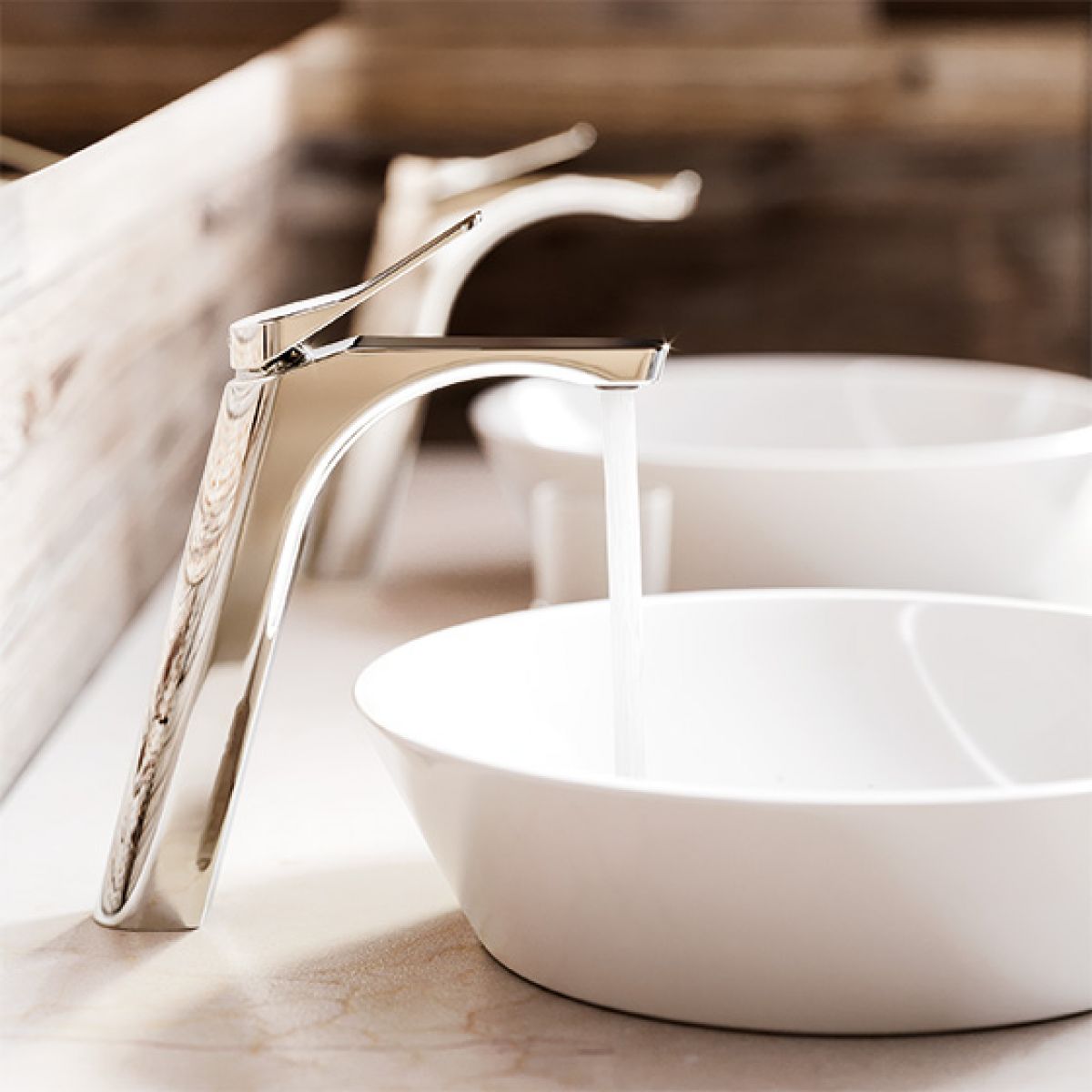 For the market launch of its new bathroom taps collection, the design company from Mannheim has come up with something special. Trend-conscious, innovative and original, Jörger presents its new “Eleven” in polished nickel in an inspiring bathroom design of alpine aesthetics and refined simplicity.