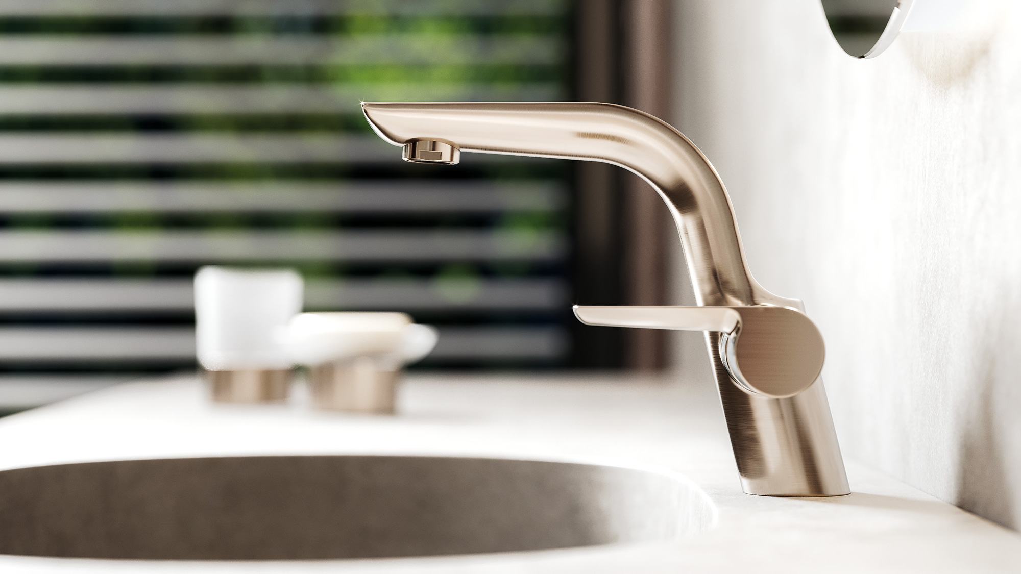 The wall-mounted models of single-hand washbasin mixers are becoming increasingly popular. It’s no wonder: On the one hand, they are practical, look uncluttered and elegant, provide more space and are comparatively easy to take care of. On the other hand, they feature an alternative, stylish design, making them desirable to many. “Exal” is a good example for this and has the potential to become a trendsetter. This is particularly the case in mink matt. “Exal” is a good example for this and has the potential to become a trendsetter. This is particularly the case in mink matt.