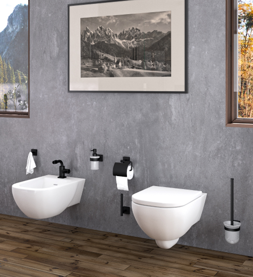 The „Charleston Square“ series of taps and accessories combines geometric forms with modern elegance.