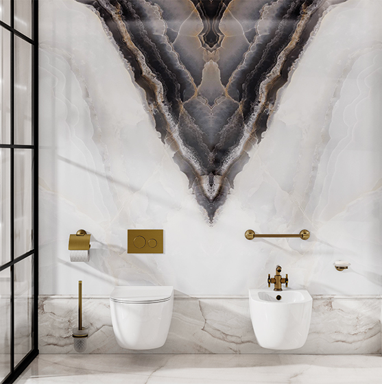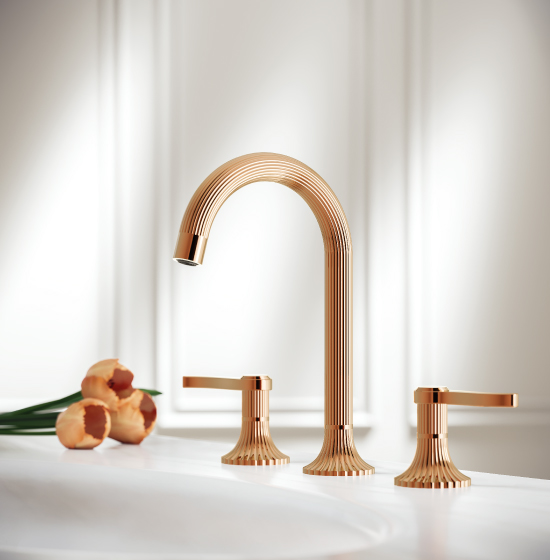 The unique design language of “Cronos” has been realised in all accessories and components of the collection. The elegantly fluted rosette plays the central role as a characteristic and decorative design element. Stylish, hand-finished surfaces complete the modern design and lend the bathroom a timeless character.
