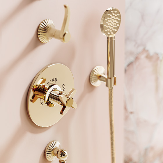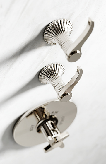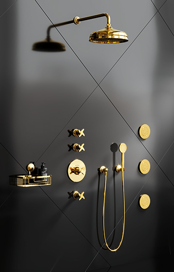 “Cronos” offers a rich variety of fittings for washbasin, bidet, bath tub and shower, which can be combined with two variants of handles: the elegant winding lever handle and the decorative cross handle.