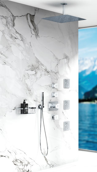 The line shape of the basis series „Empire Royal“, with its aesthetic fixture outlet, is clear and reduced. The graceful arch, reaching up from the square rosette is absolutely unique.